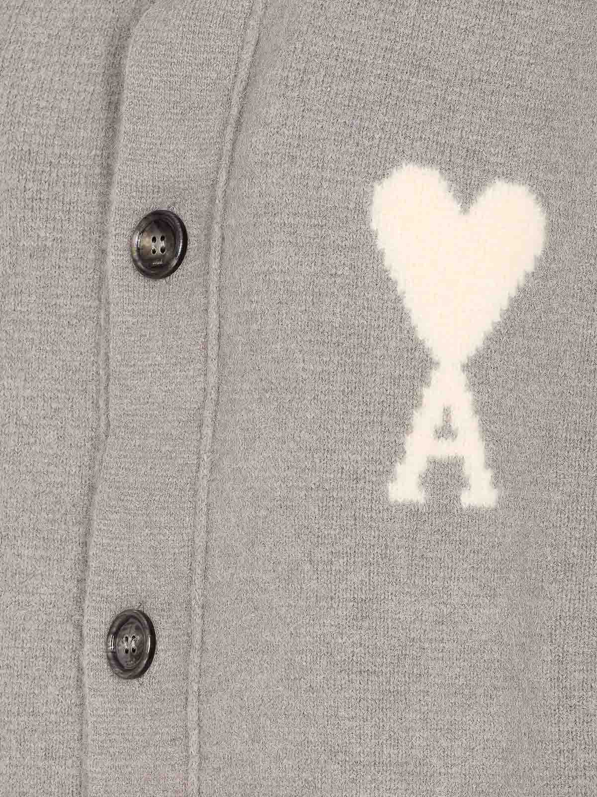 Cardigan ADC gris Ami - Alexandre Mattiussi avec fermeture à boutons, col rond, manches longues, logo ADC brodé sur le devant