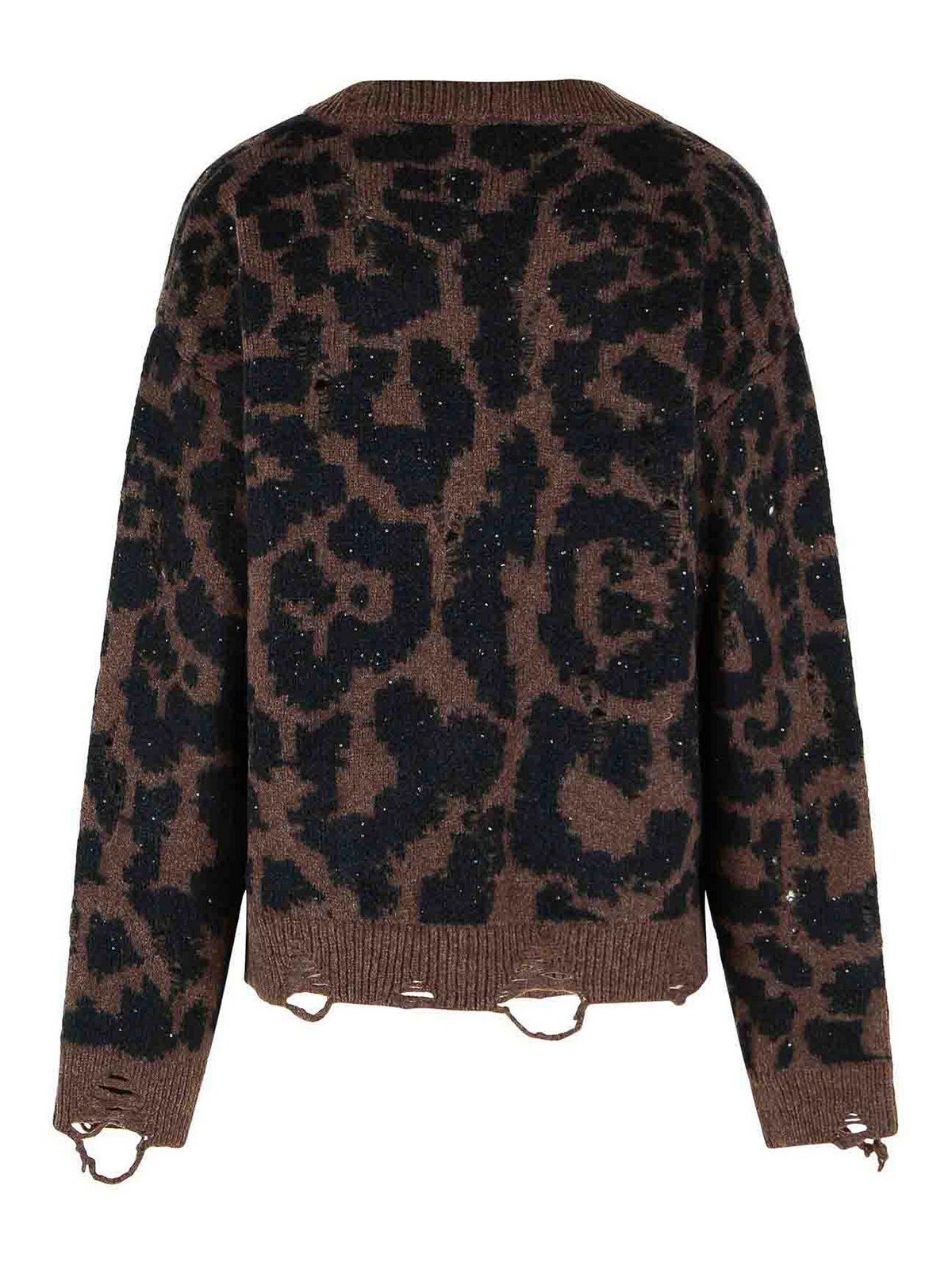 Coupe classique, fabrication jacquard, design complété par des cassures sur les ourlets et les poignets, fermeture boutonnée sur le devant, deux poches de lit horizontales, paillettes décoratives aux tons