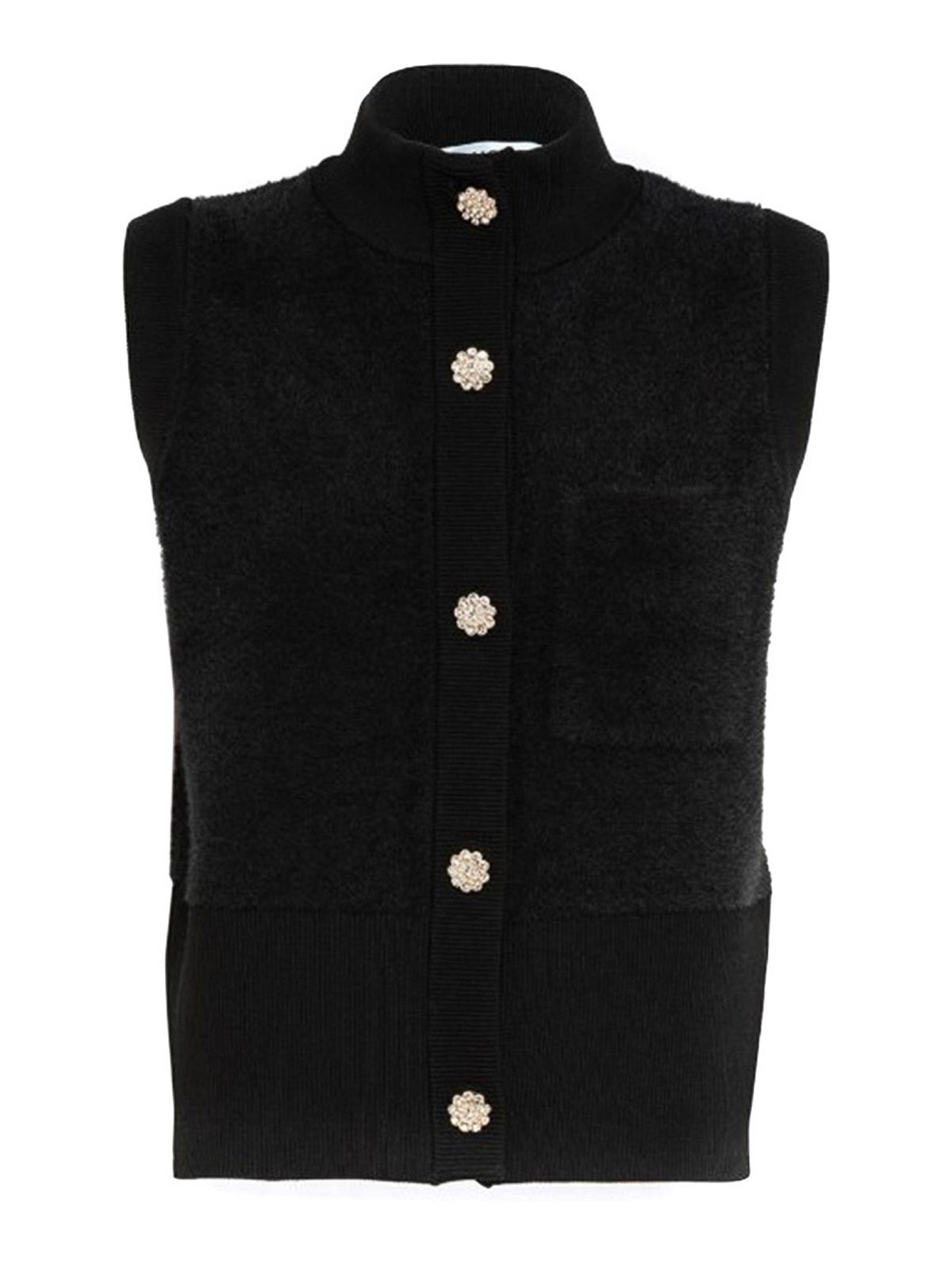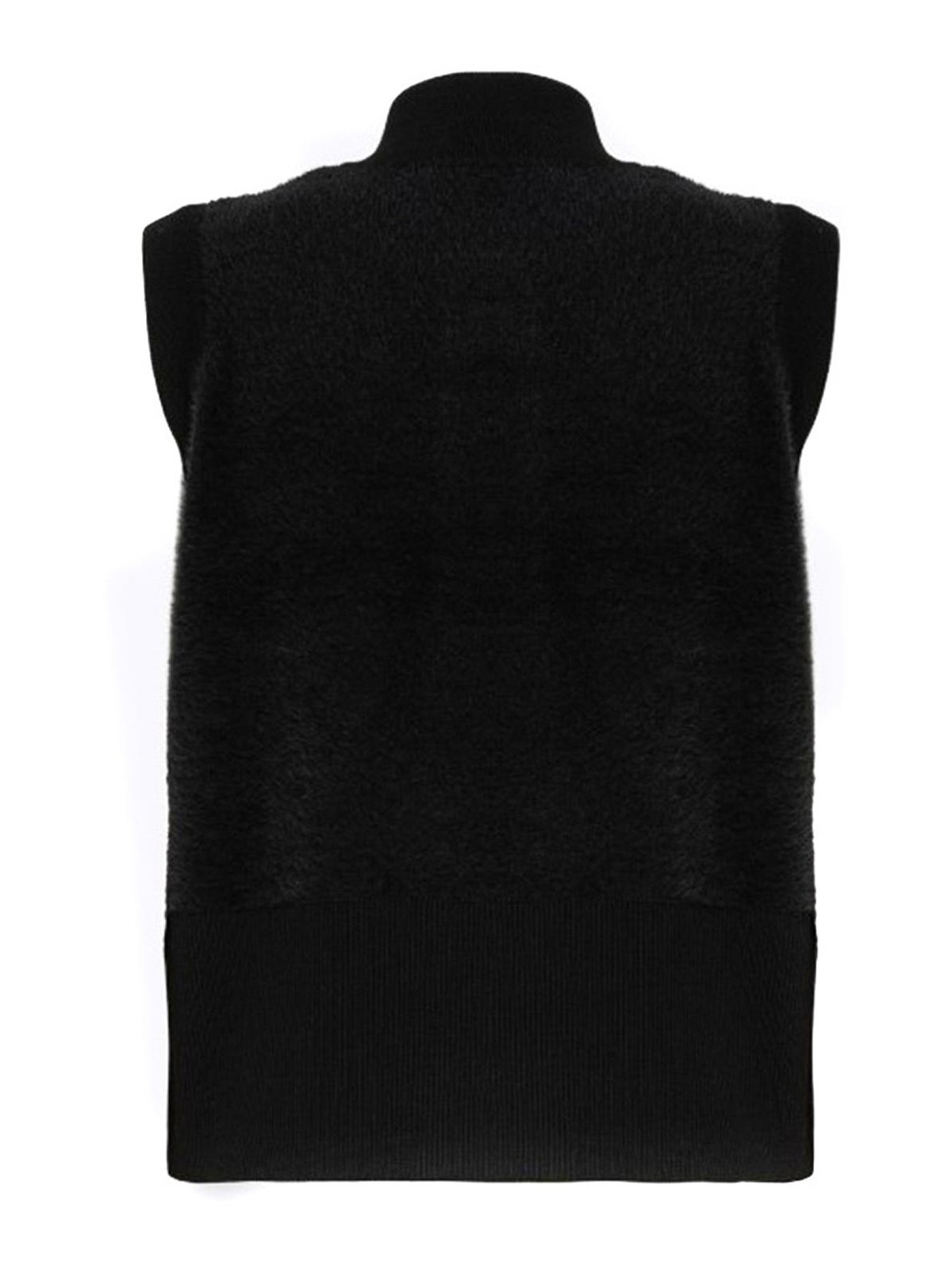 Cardigan Blugirl en fausse fourrure, col haut, fermeture boutonnée ornée de bijoux, ourlet côtelé, poche plaquée, bordure en viscose.