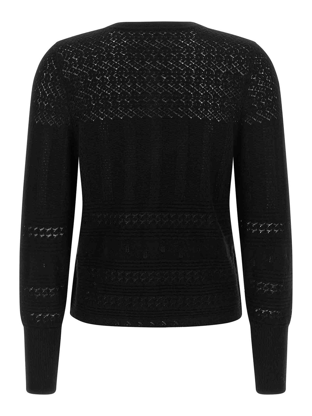 cardigan en laine mélangée de cachemire ajouré, col rond, fermeture boutonnée sur le devant, manches longues avec poignets