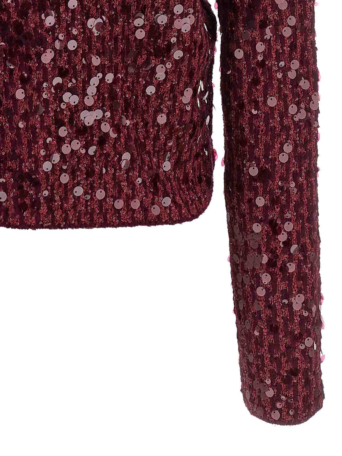 Cardigan évasé en viscose Mamma Mia avec application de paillettes sur toute la surface, col en V, fermeture boutonnée sur le devant, poches, manches longues à revers.