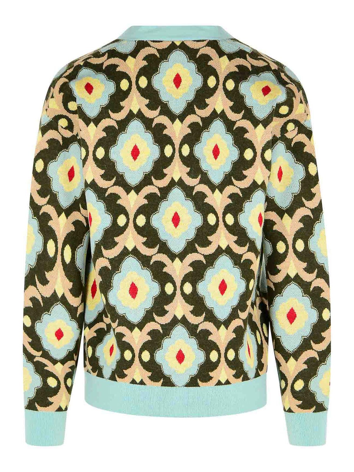 Manches longues en jacquard, motif « tapisserie », col en V, emmanchures basses, bordures côtelées, bouton