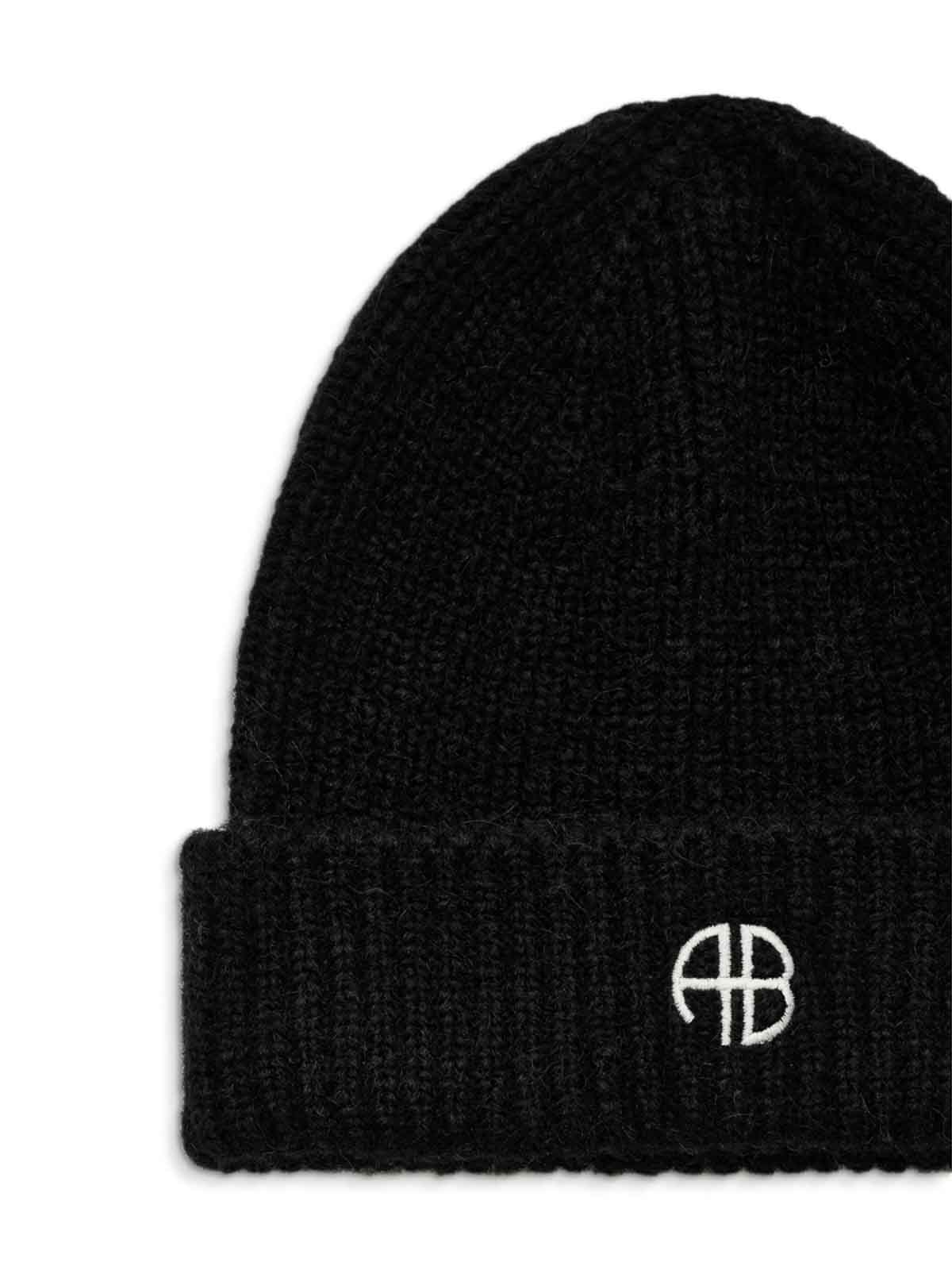 Logo à enfiler en maille côtelée noire à effet brossé avec couronne ronde brodée sur le bord retroussé