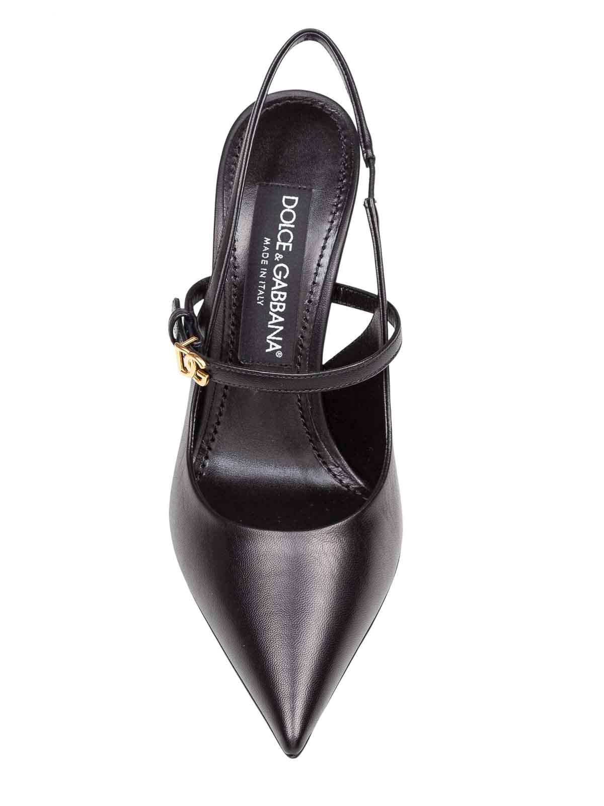 Slingback en cuir nappa avec logo DG sur Fire Base Point Base Cardinal, nouvelle semelle intérieure à motifs complets avec étiquette galvanique, article doré équipé d'un sac noir et d'une hauteur de boîte noire gaufrée