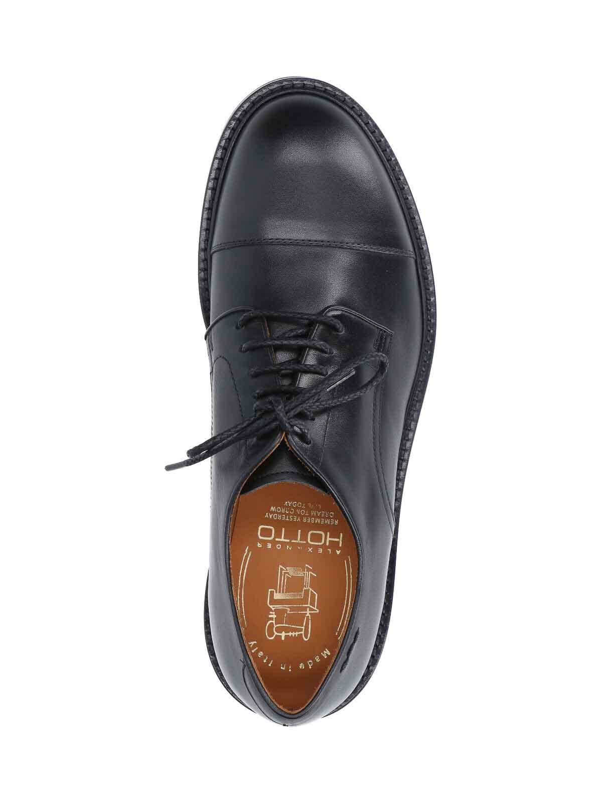 Chaussures derby en cuir Alexander Hotto, noires, bout rond, fermeture à lacets, surpiqûres surélevées sur le devant, semelle en caoutchouc.
