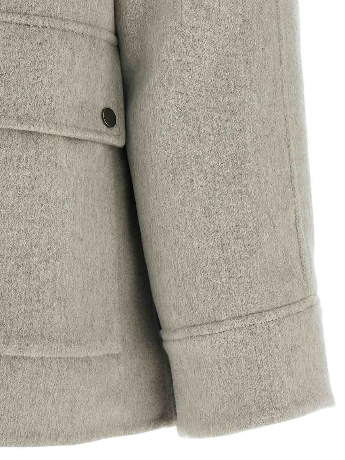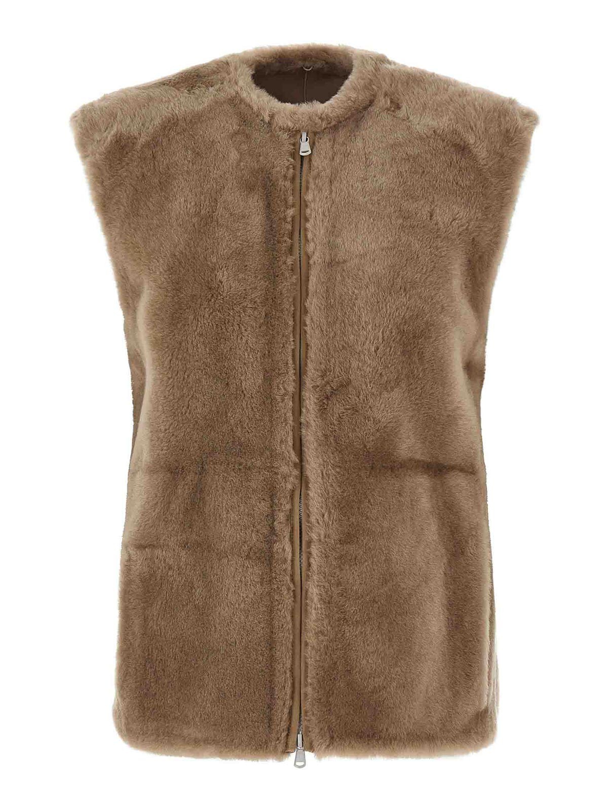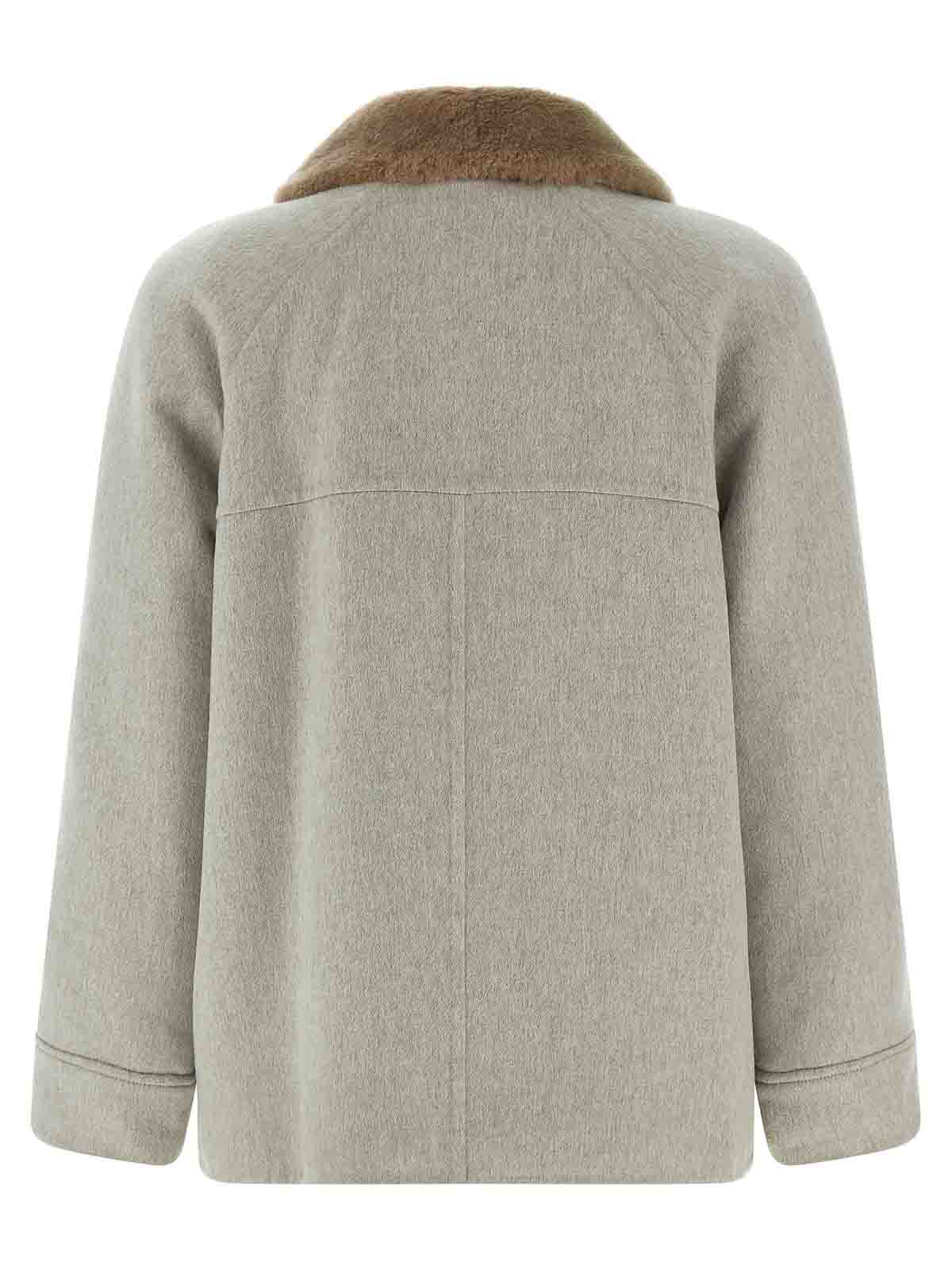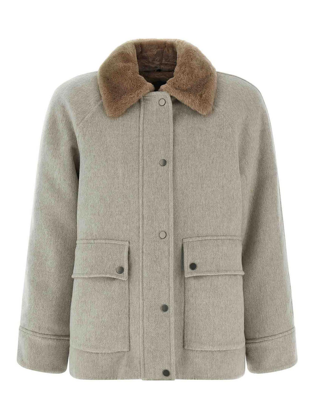 Veste en cachemire, col chemise en sherling avec détail monile dans le dos, fermeture zippée et bouton-pression sur le devant, poches, manches longues à revers, insert intérieur en peau de mouton avec fermeture zippée amovible.