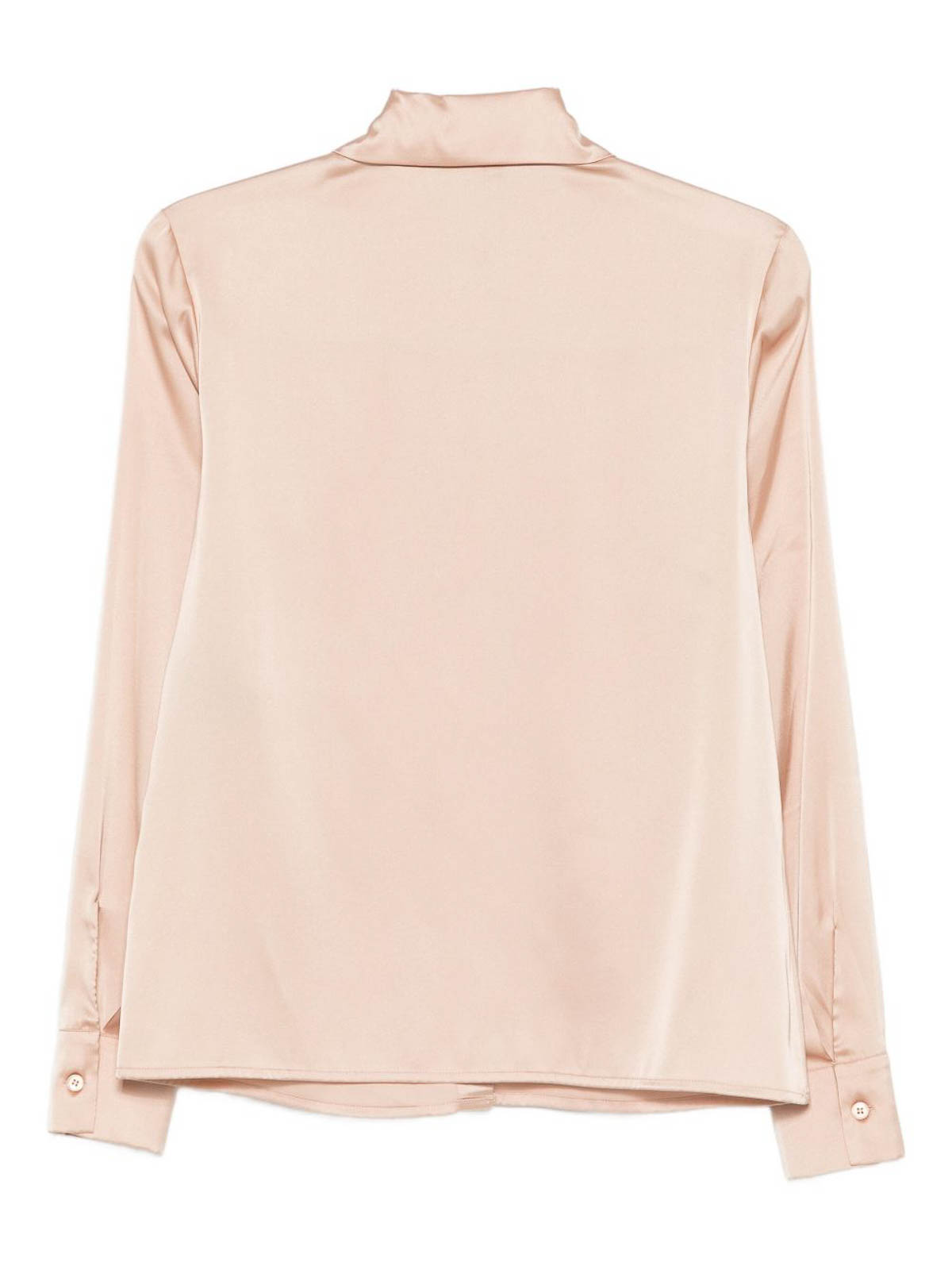 Bouton rose clair, manches longues, poignets boutonnés, col classique, ourlet droit
