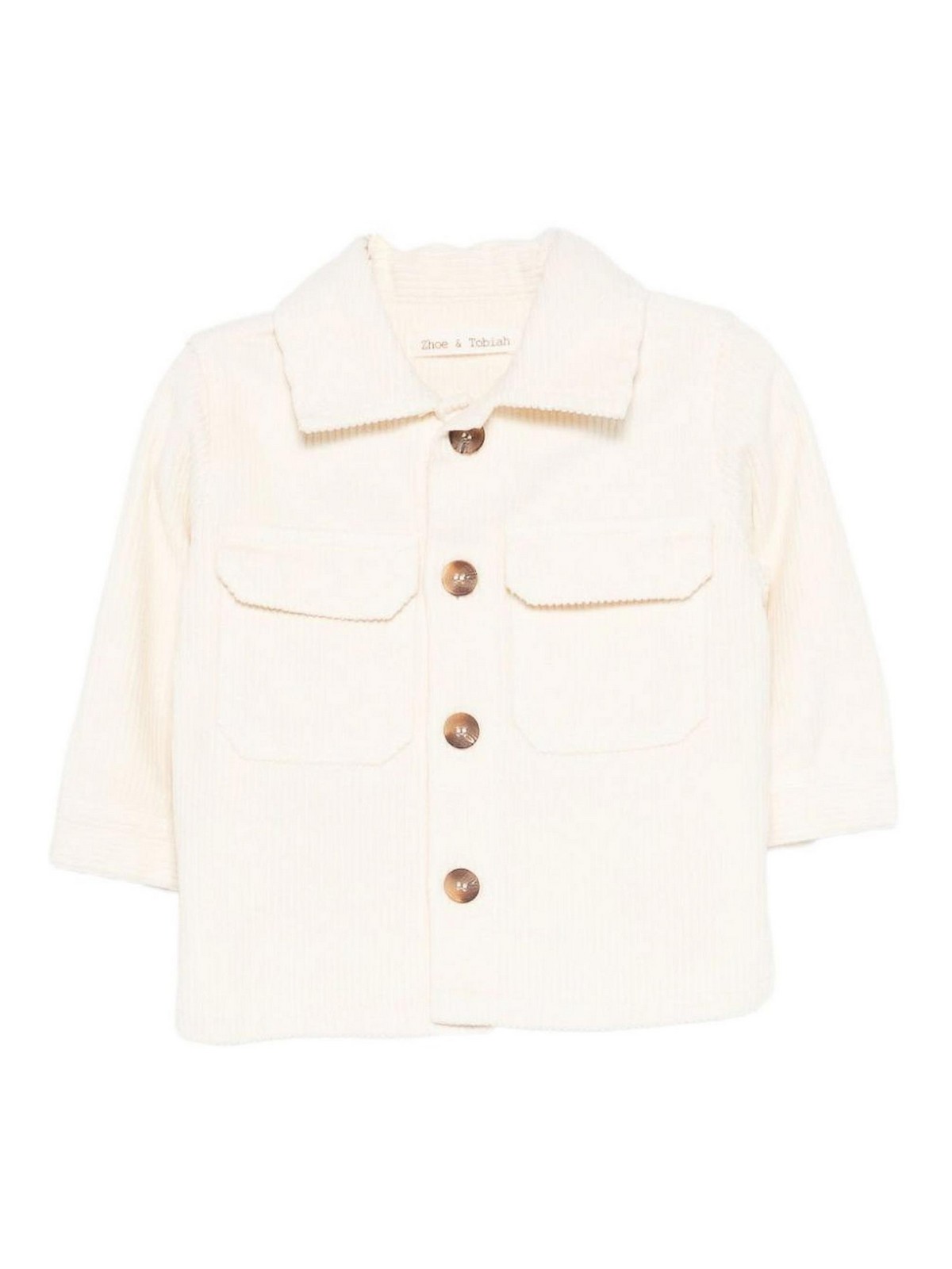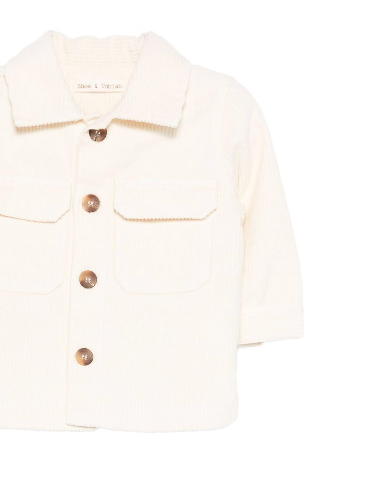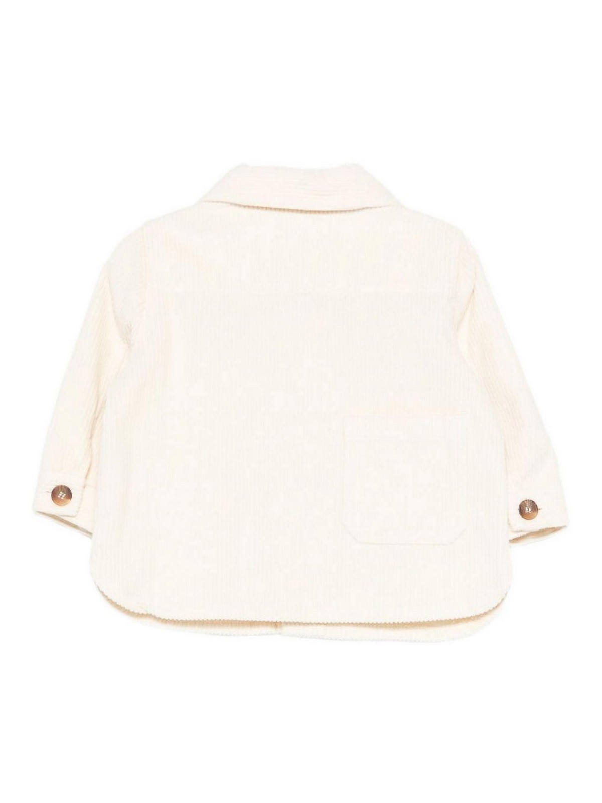 Chemise en velours côtelé avec patte de boutonnage côtelée texturée beige, poches sur la poitrine, col pointu