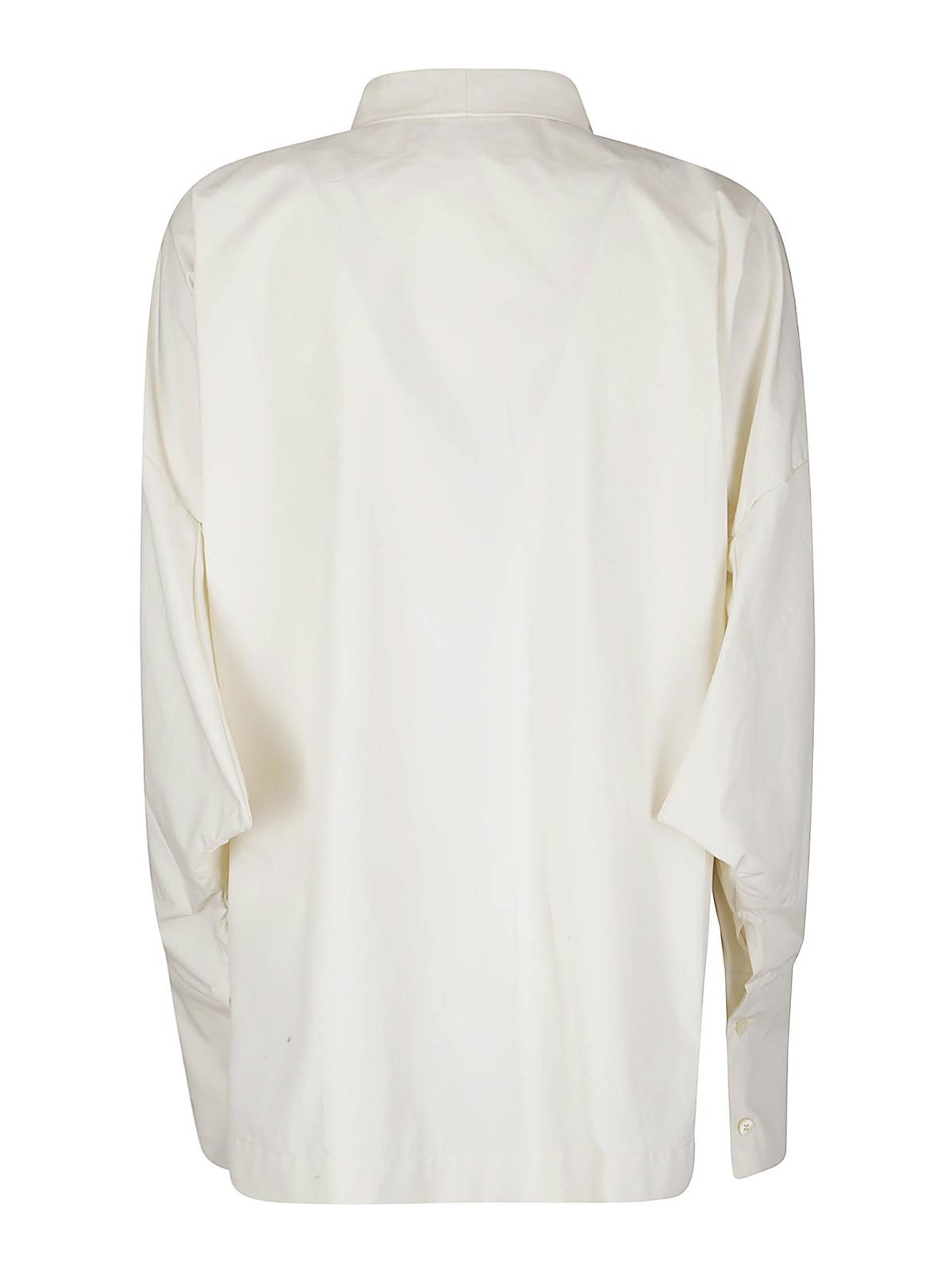 Chemise écrue à manches longues avec col à nouer, coupe ample