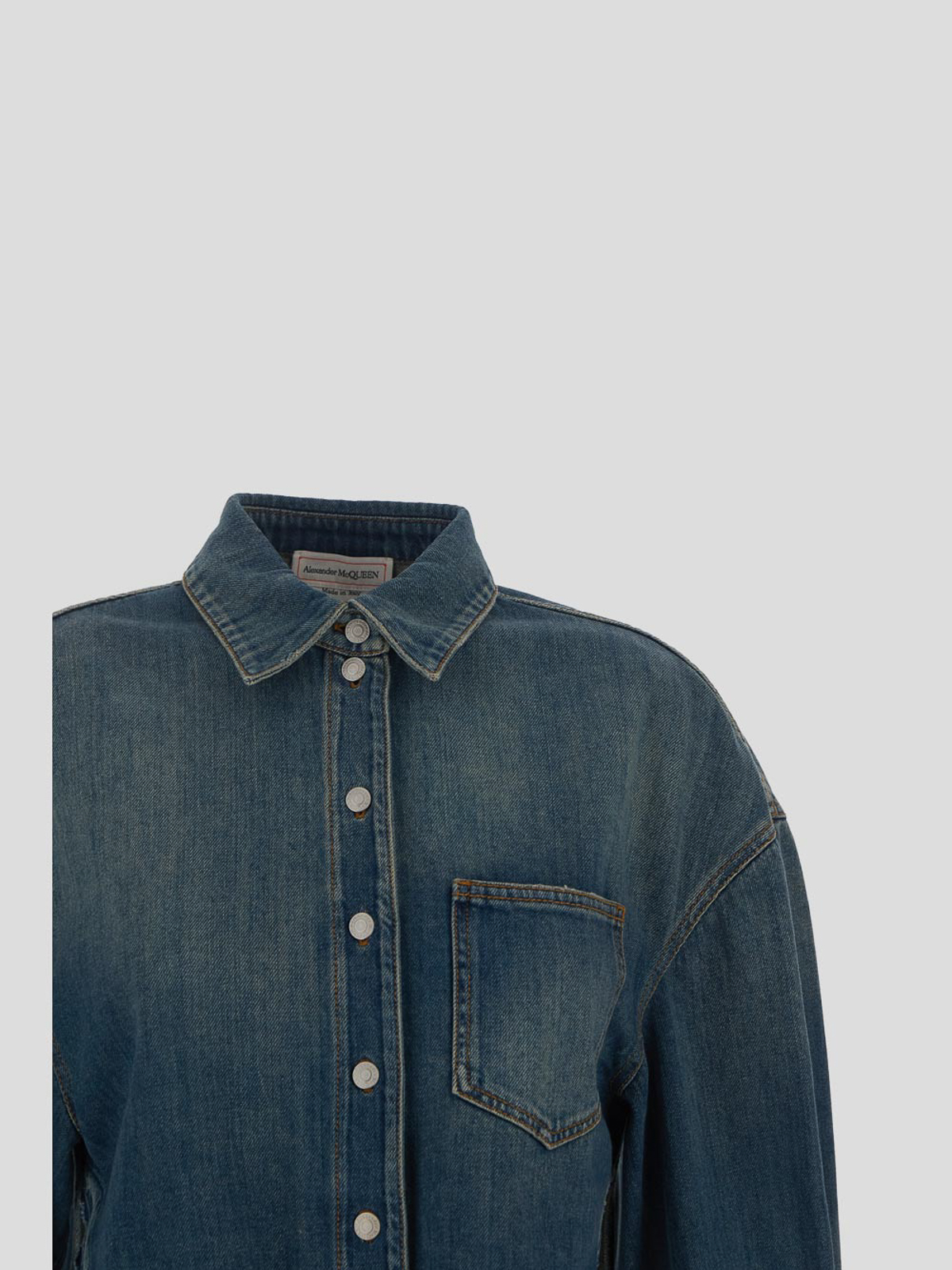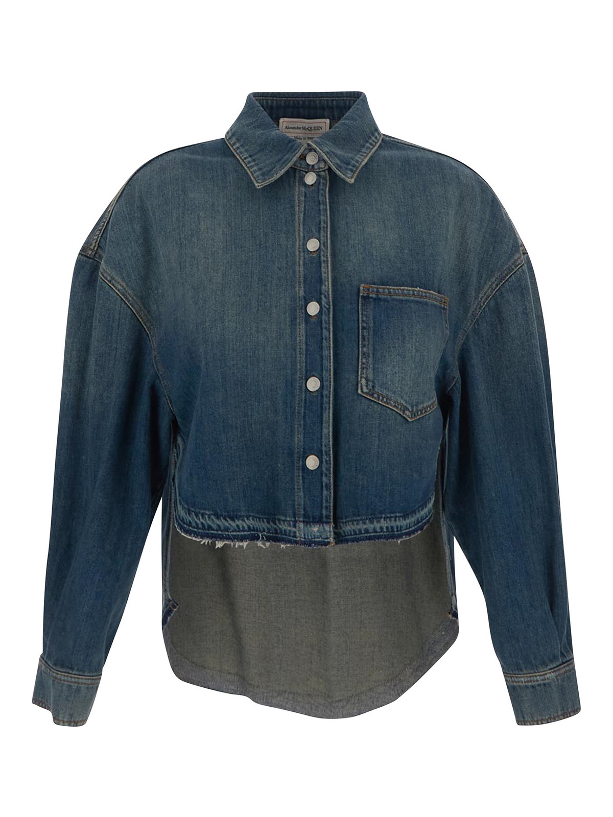 Chemise Alexander McQueen en jean bleu avec devant raccourci et dos plus long