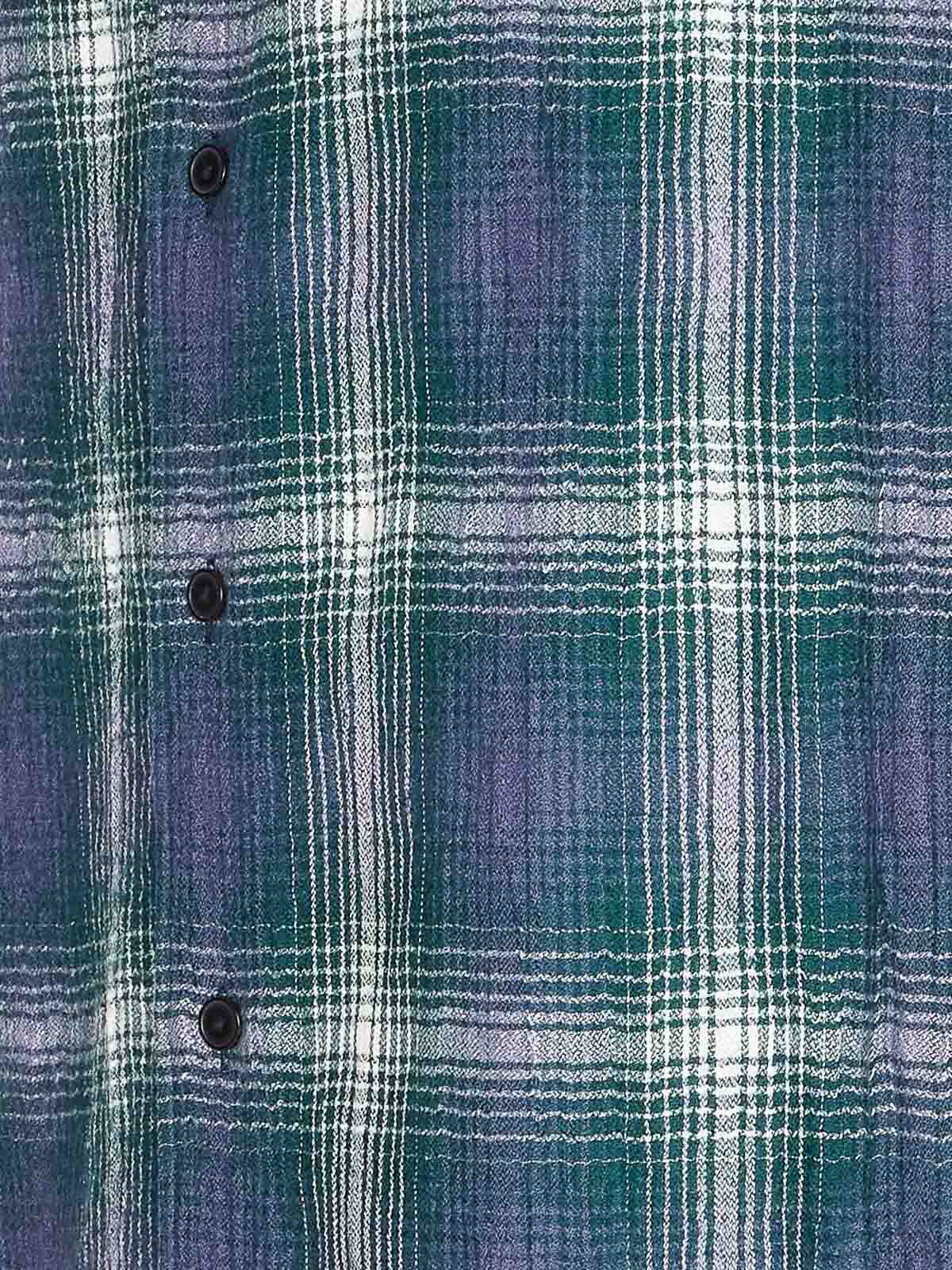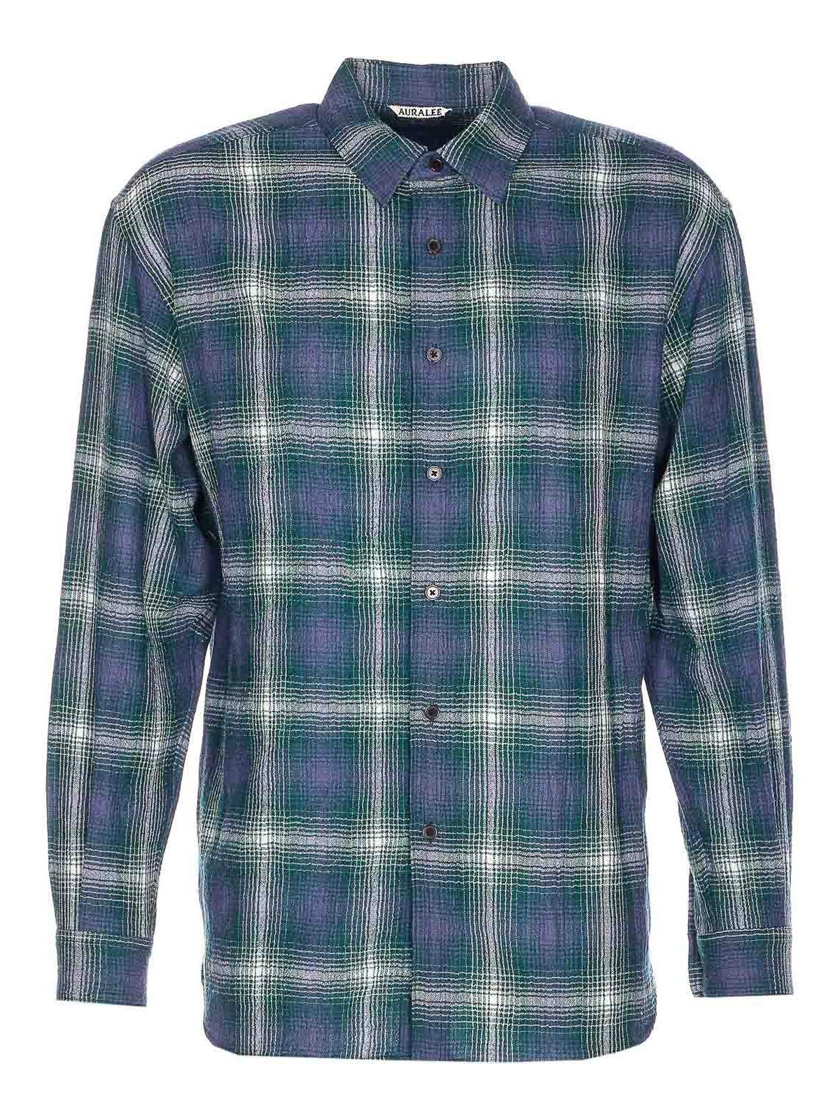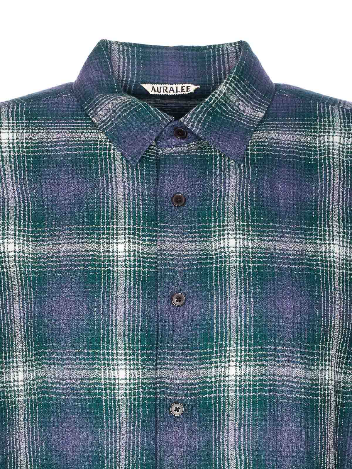 Chemise à carreaux aérée en laine vert forêt Auralee avec fermeture boutonnée sur le devant, manches longues, col droit, poignets boutonnés