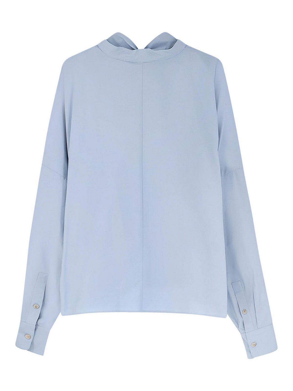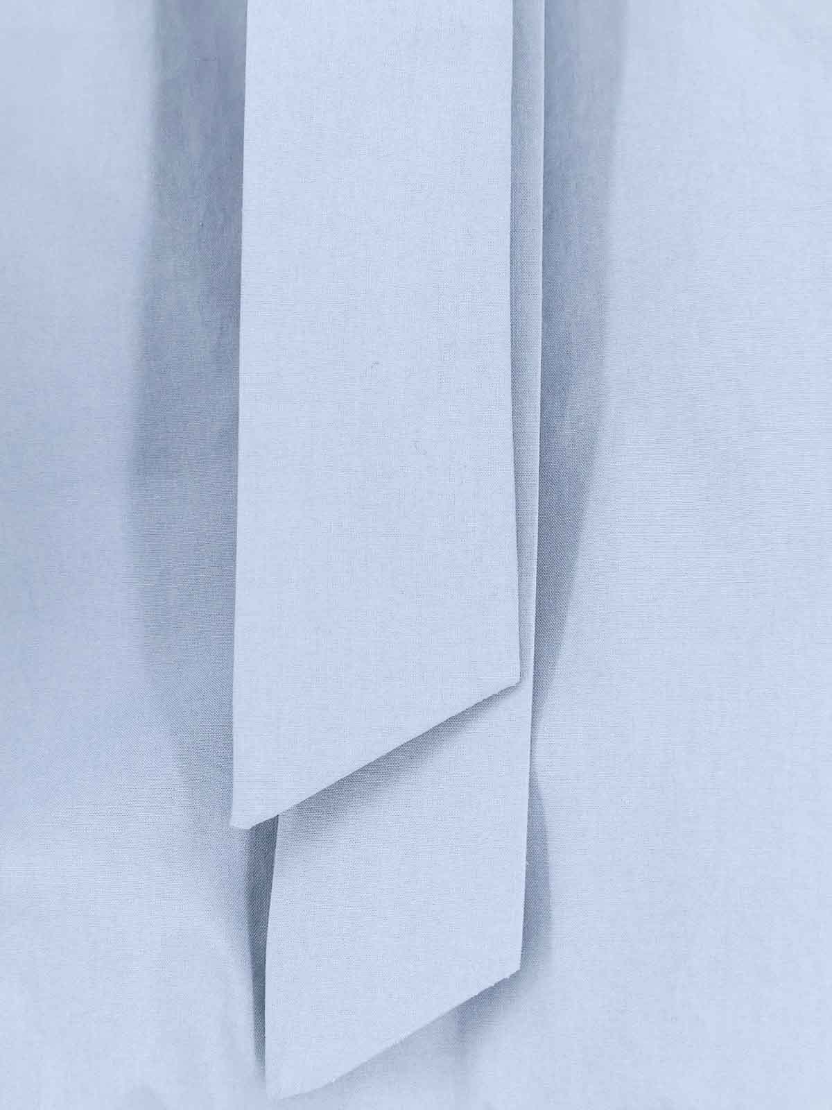 Encolure en V, nœud, manches longues larges avec poignets et boutons, ourlet asymétrique, fabriqué en Italie, 100 % coton.