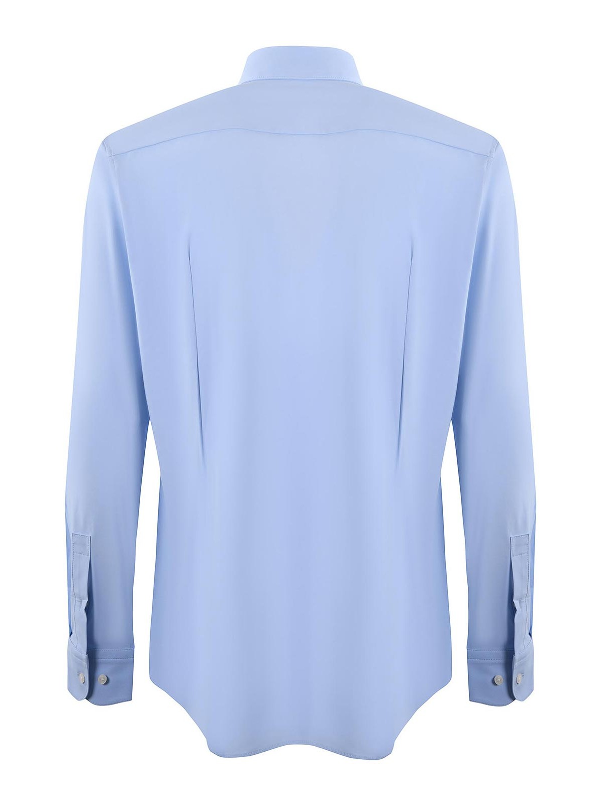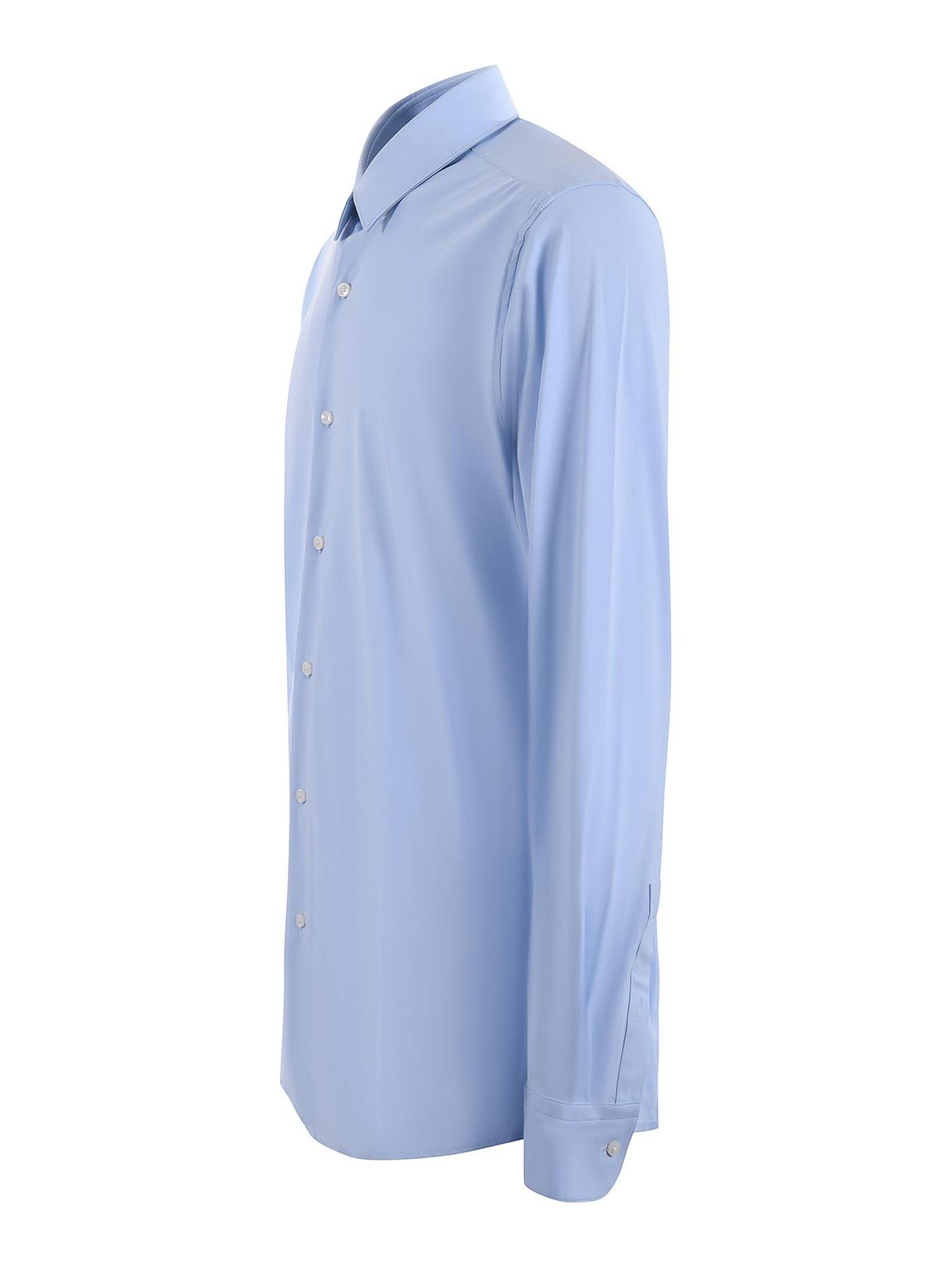 Chemise Boss en stretch bleu clair, col classique, bouton, poignet long avec bouton, taille cintrée en photo