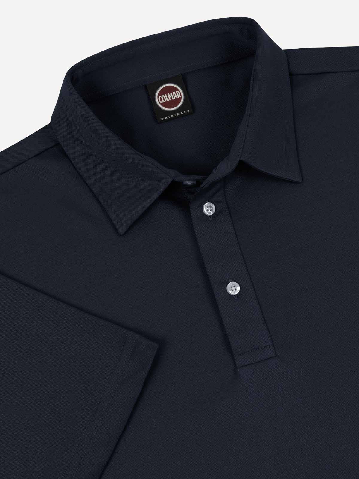 Col de chemise, coupe classique, fermeture à trois boutons, fentes latérales sur le bas, couleur unie, sans logo, instructions de lavage : laver en machine à 30 degrés maximum, ne pas utiliser d'eau de javel, ne pas utiliser le sèche-linge, repasser à 110 degrés maximum, lavage à sec non autorisé.