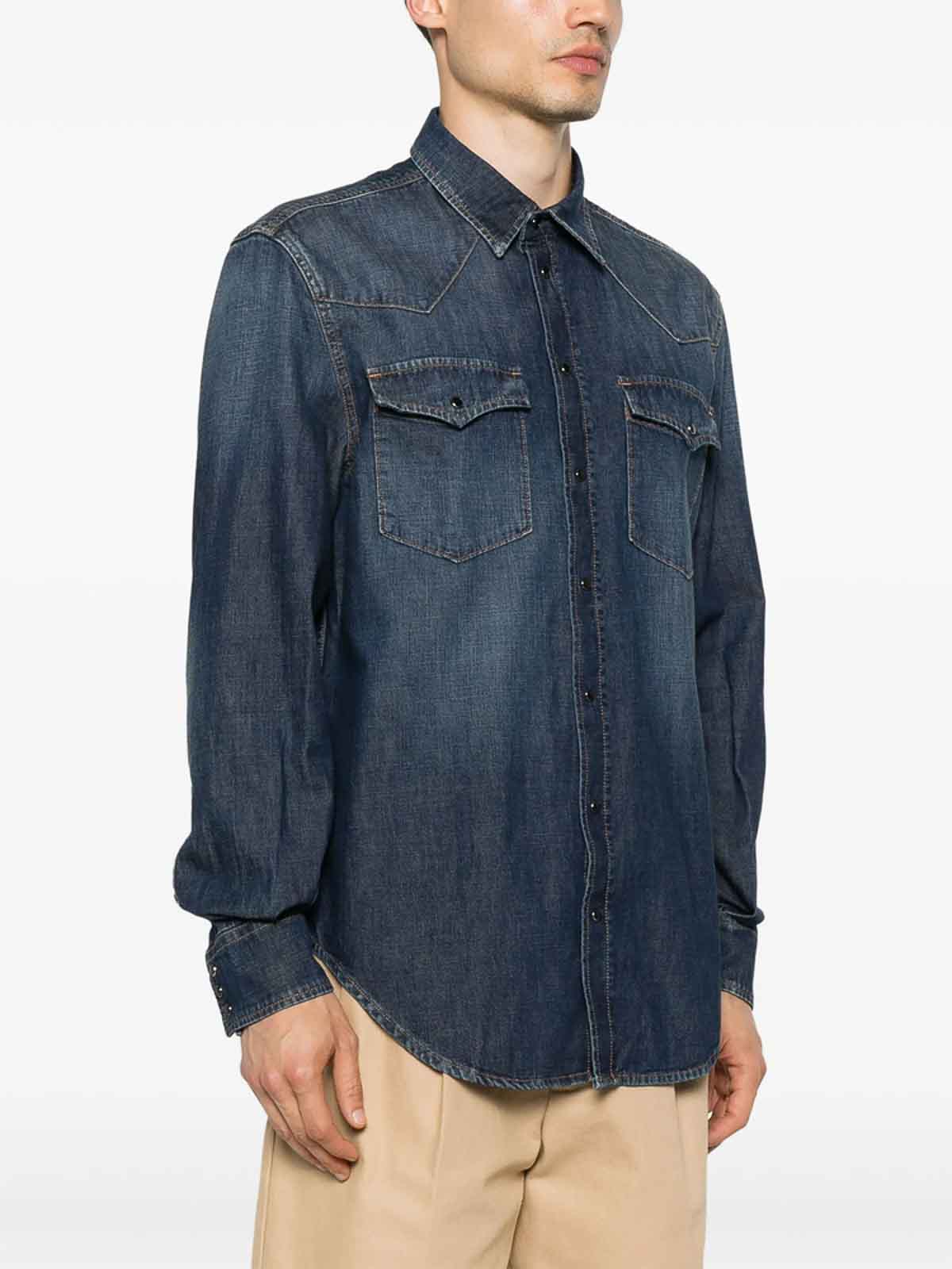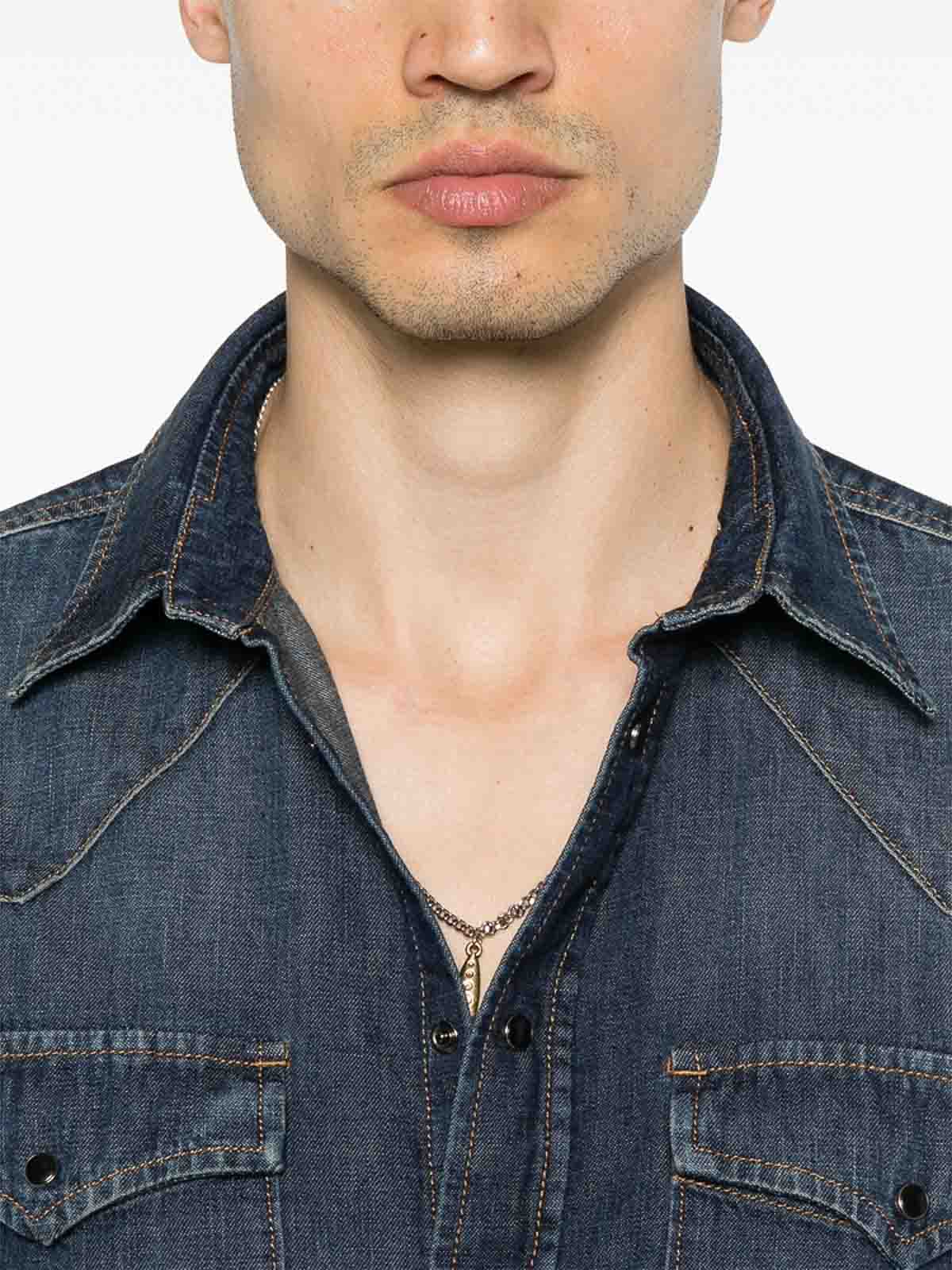 Deux poches à rabat sur la poitrine à bouton-pression bleu indigo, manches longues, poignets à boutons-pression