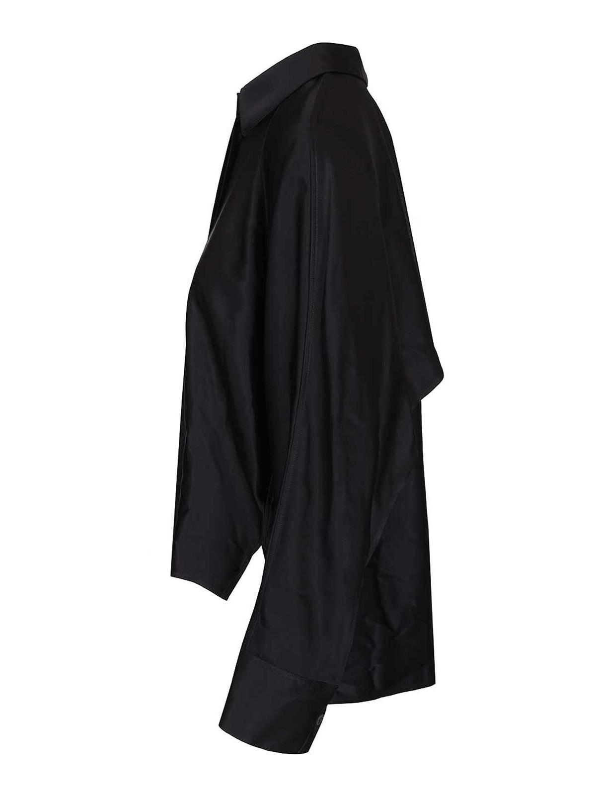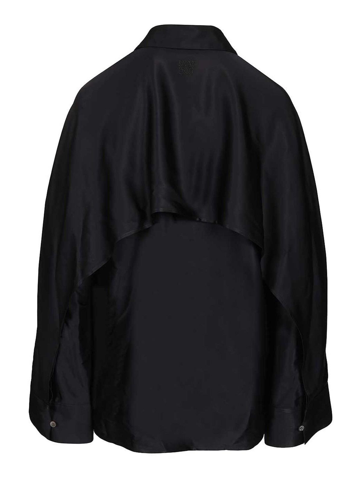 Chemise cape en viscose de la marque Loewe dotée d'un empiècement dans le dos et sur les manches, d'une coupe décontractée, d'une longueur standard, d'un col classique, d'un bouton dissimulé aux poignets boutonnés, d'un ourlet asymétrique dans le dos et d'une applique anagramme dans le dos.