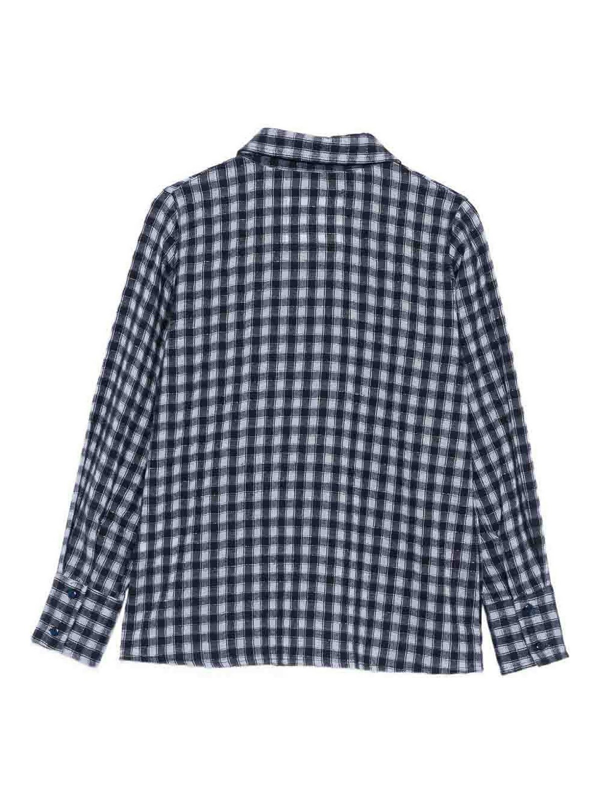 Chemise longue à carreaux blancs et bleus avec nœud au col