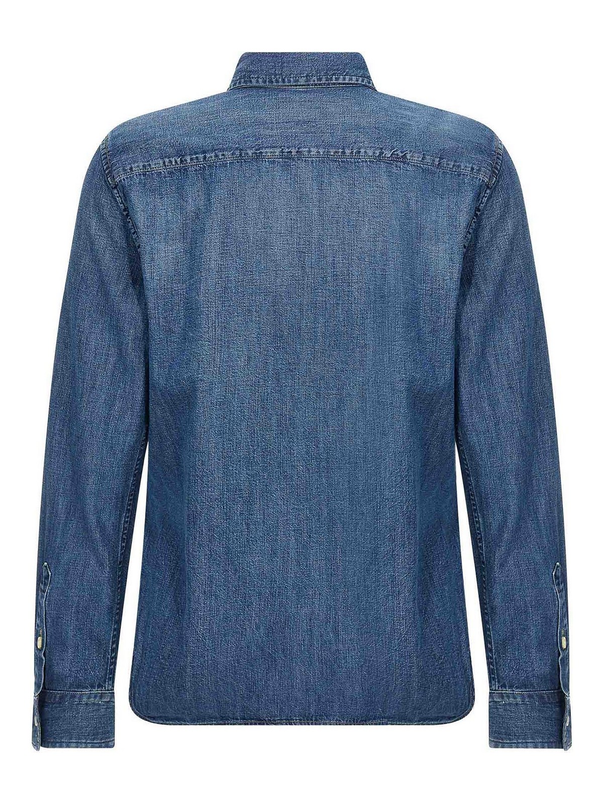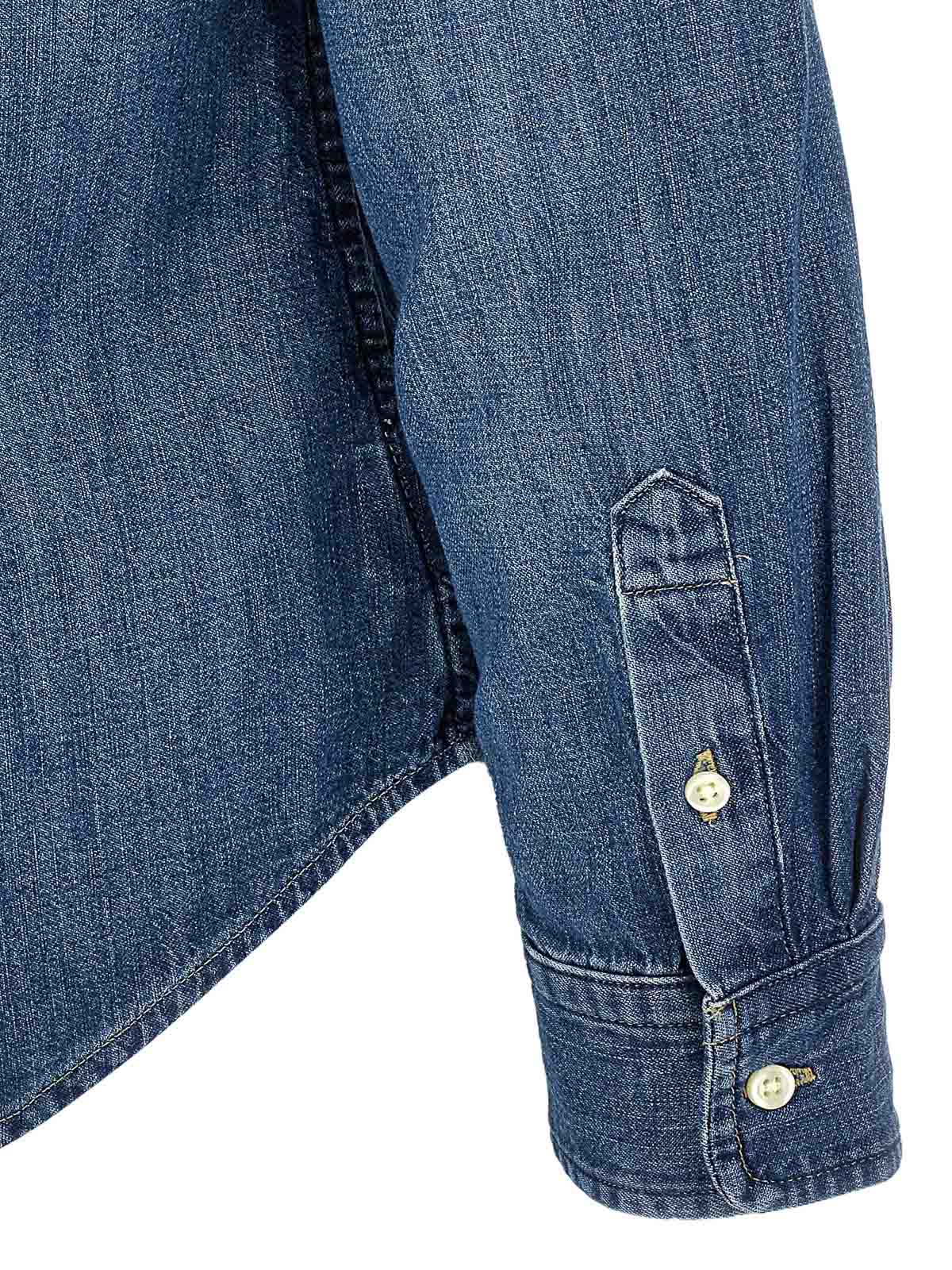 Chemise en jean en coton avec bouton logo et manches longues à revers