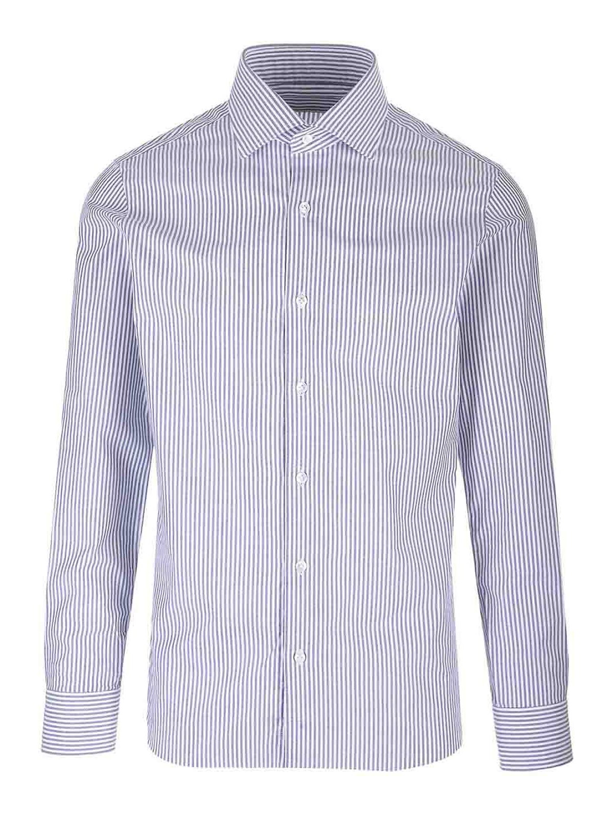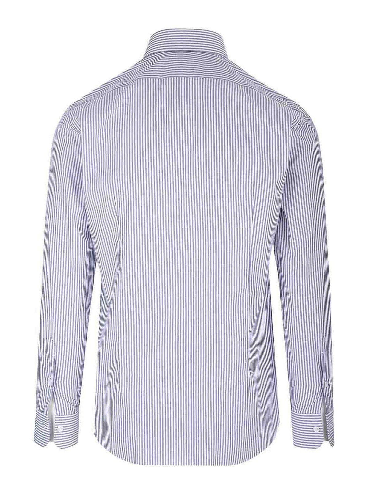 Chemise culte classique de Barba en coton rayé blanc et bleu avec fermeture boutonnée en nacre Nom de la couleur du