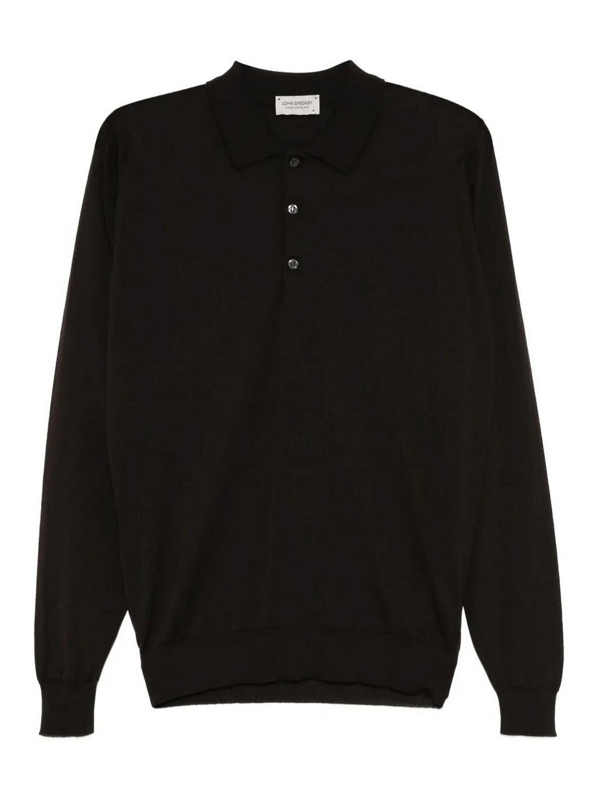 Polo à manches longues John Smedley Belper, confectionné en laine mérinos extra-fine de première qualité. La teinte brune chaude et enveloppante, connue sous le nom de Faulkner Brown, confère un look élégant et polyvalent. Doté d'une coupe ajustée, d'un col sportif et d'une fermeture à trois boutons, ce polo est idéal pour un look raffiné en toute saison.