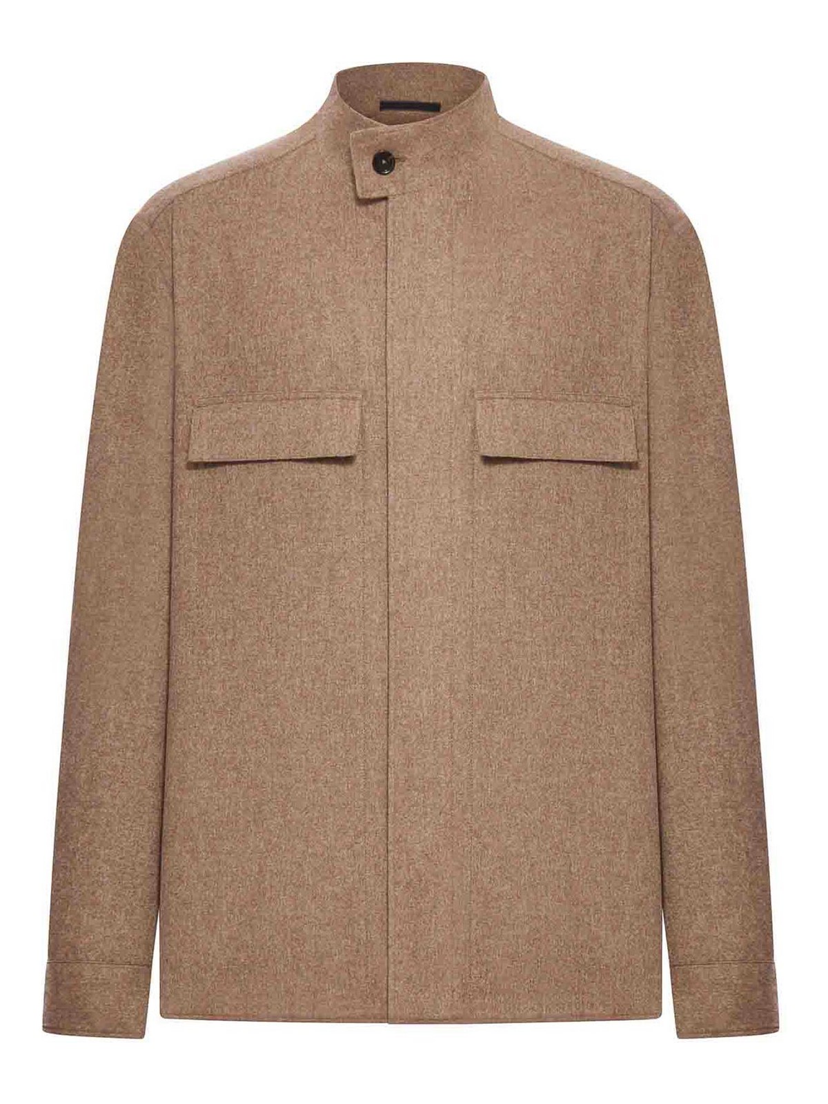 Montant, col montant, poignets de chemise, bouton avec patte de boutonnage cachée, poches poitrine à rabat, -, - marron