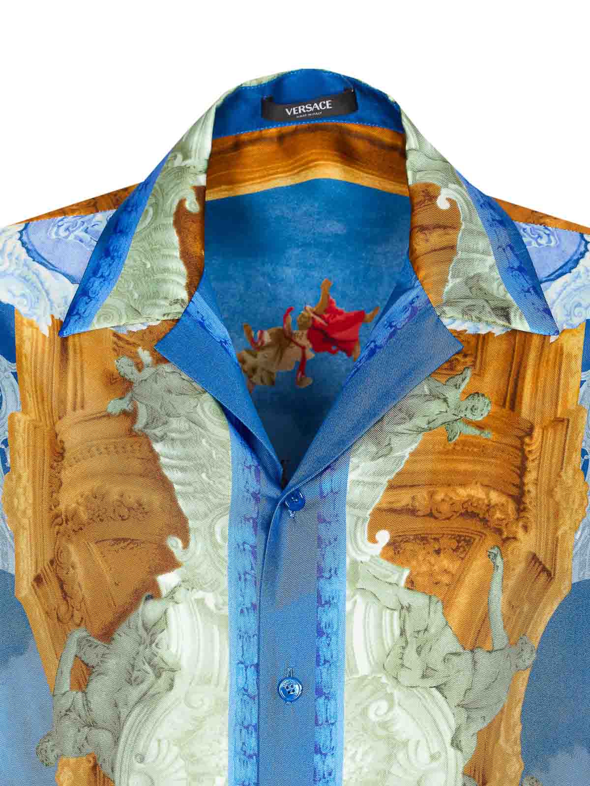 Versac multicolore avec fermeture boutonnée à imprimé Versace Affresco, manches courtes, col régulier, manches courtes
