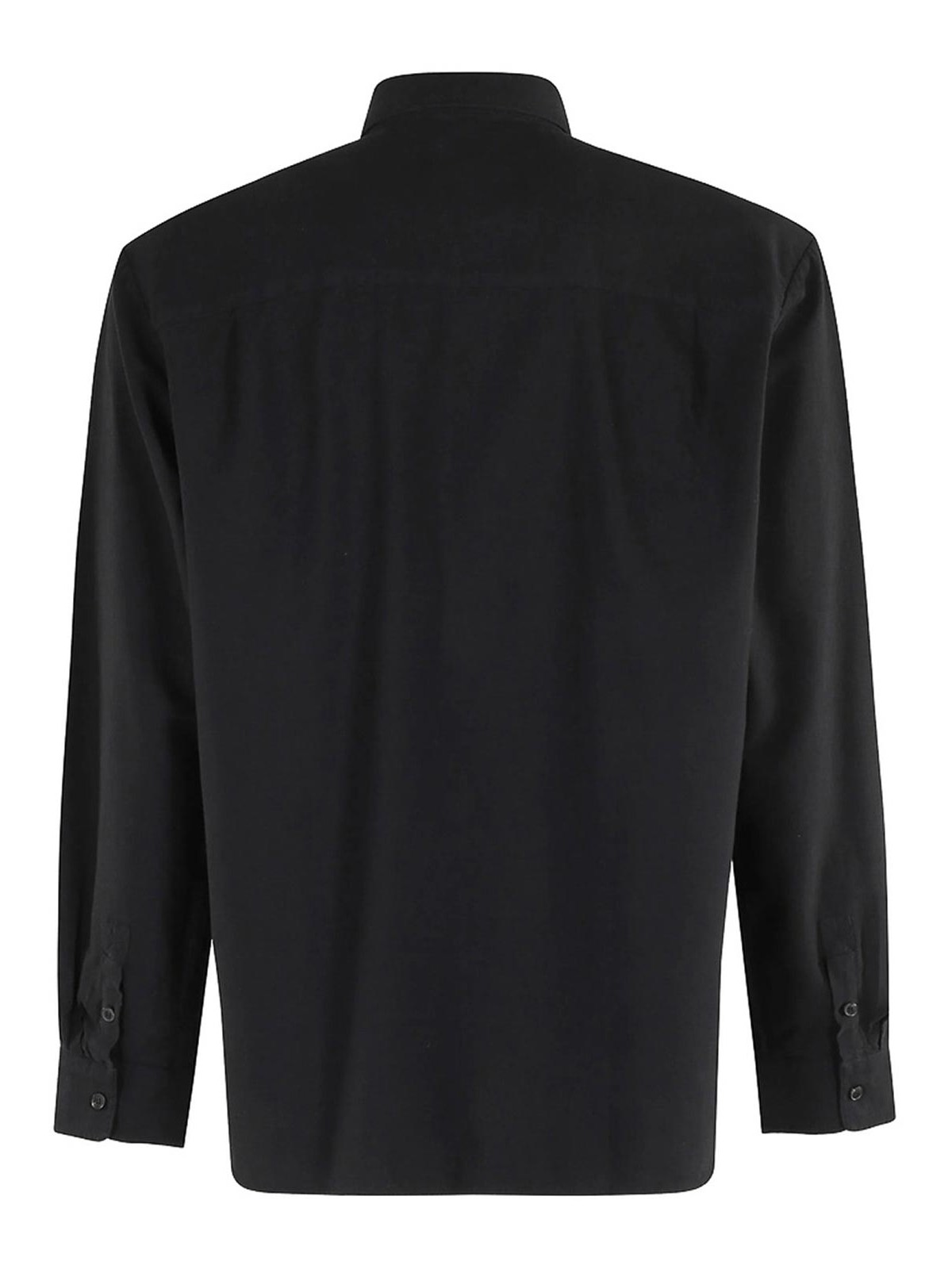 Fermeture boutonnée noire, manches longues, poche poitrine, logo brodé, ourlet droit