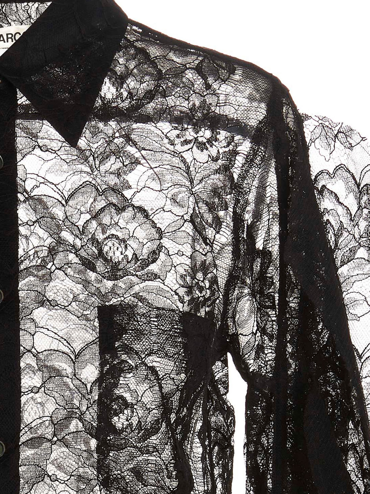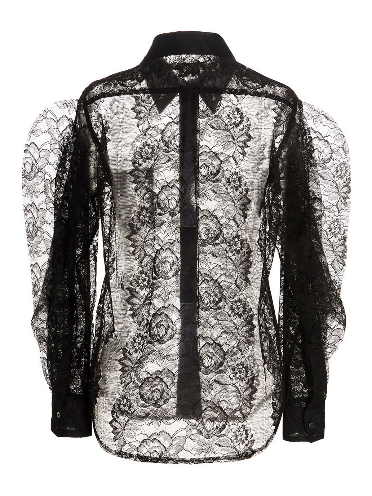 Chemise en dentelle transparente à manches longues en forme de ballon, fermeture boutonnée et poche.