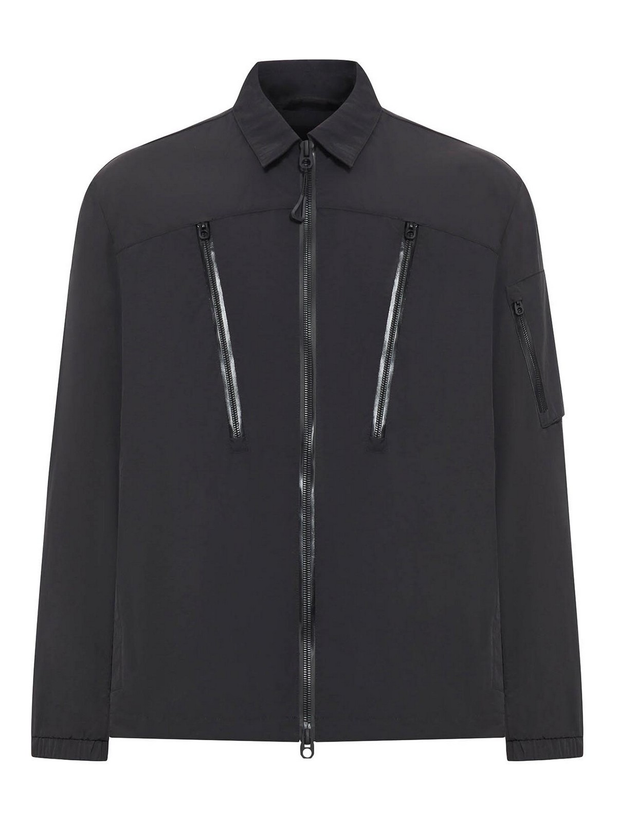 Col classique- fermeture éclair bidirectionnelle, deux poches zippées verticales sur la poitrine- poche zippée sur la gauche, longs poignets boutonnés-, couleur noire
