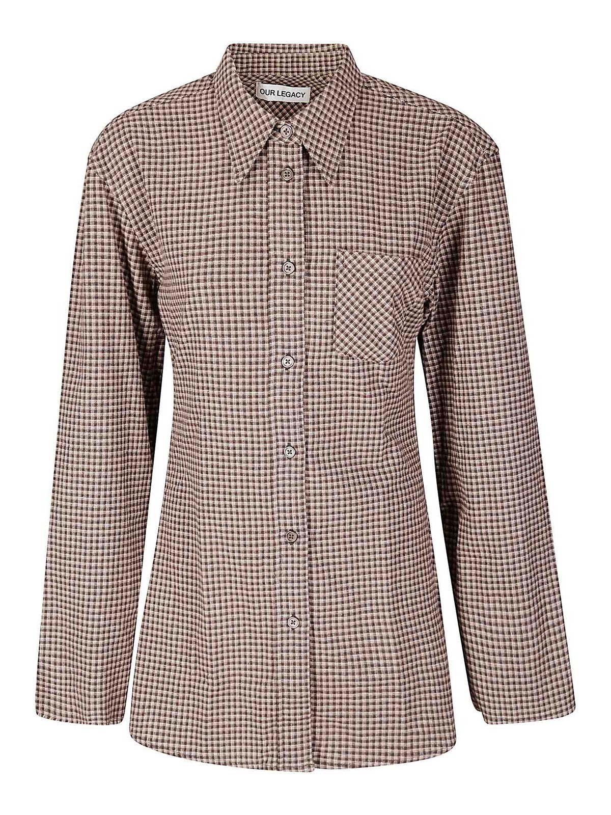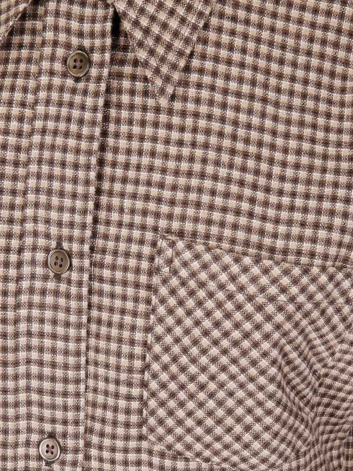 Chemise à carreaux, fermeture par boutons en nacre, poche poitrine, ourlet arrondi, coupe classique avec plis.