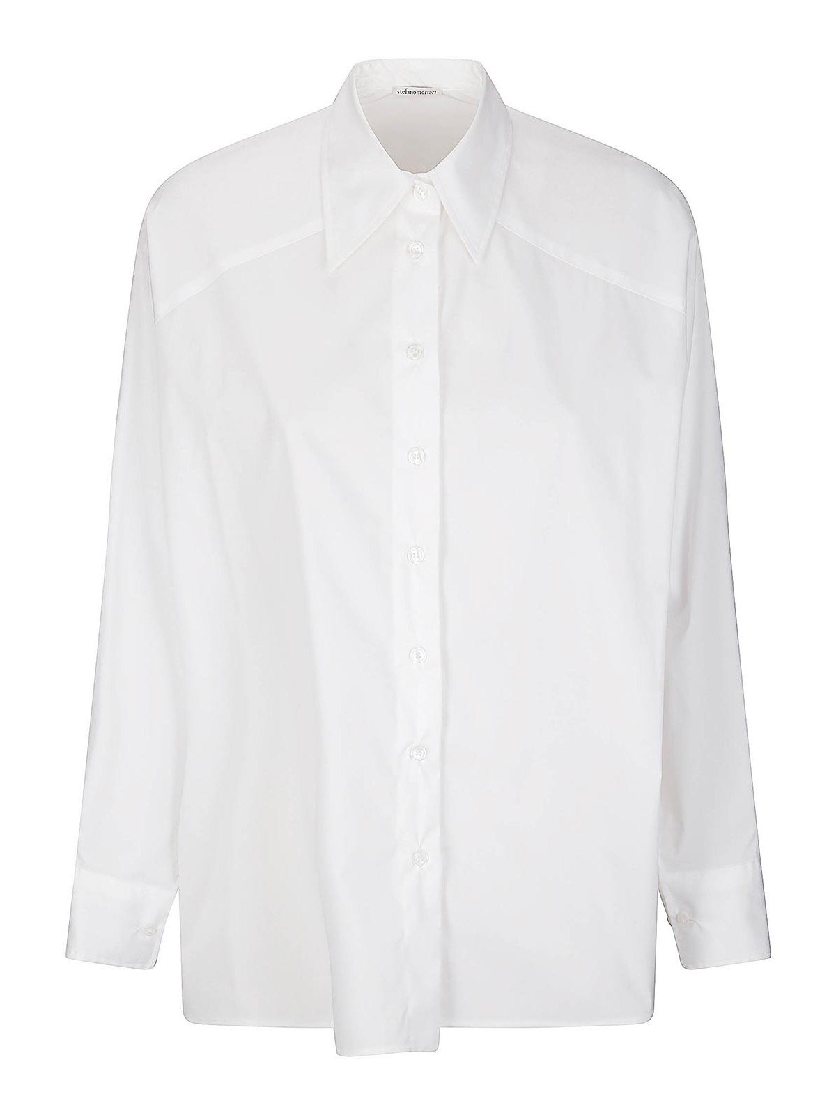 Chemise ample légère et semi-transparente en coton, manches larges, coutures géométriques.
