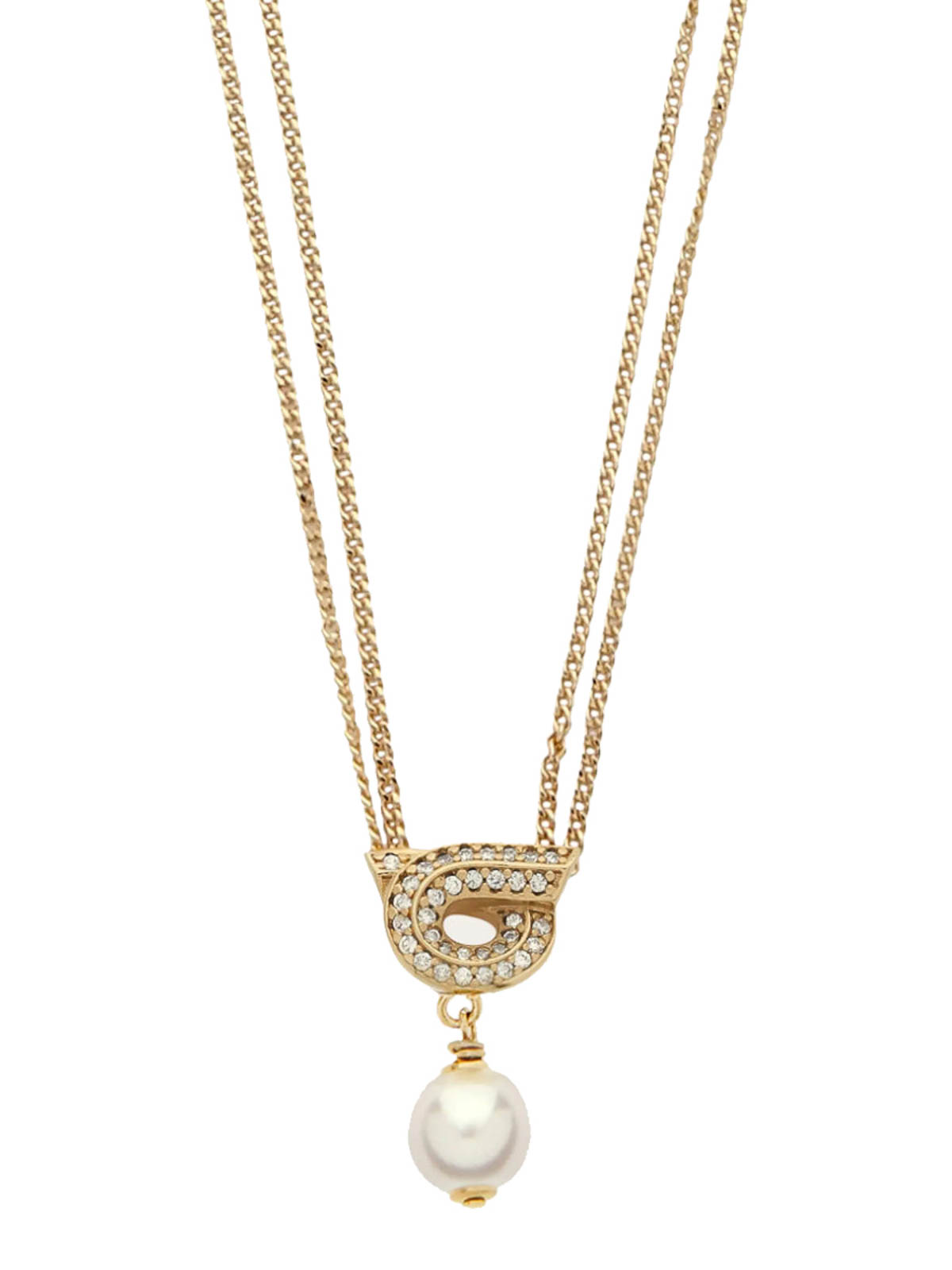 Encolure gancini dorée Ferragamo, fermeture à crochet, détail en perles et cristaux, double détail