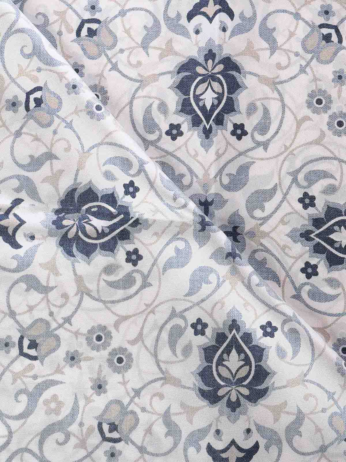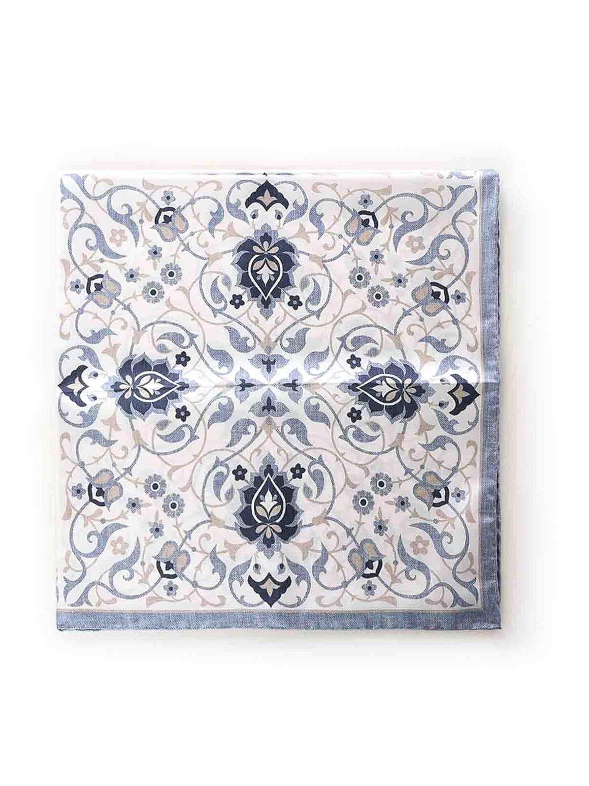 en pure soie, dimensions : 65 x 65 cm, fabriqué en Italie, couleur du créateur : ivoire, denim