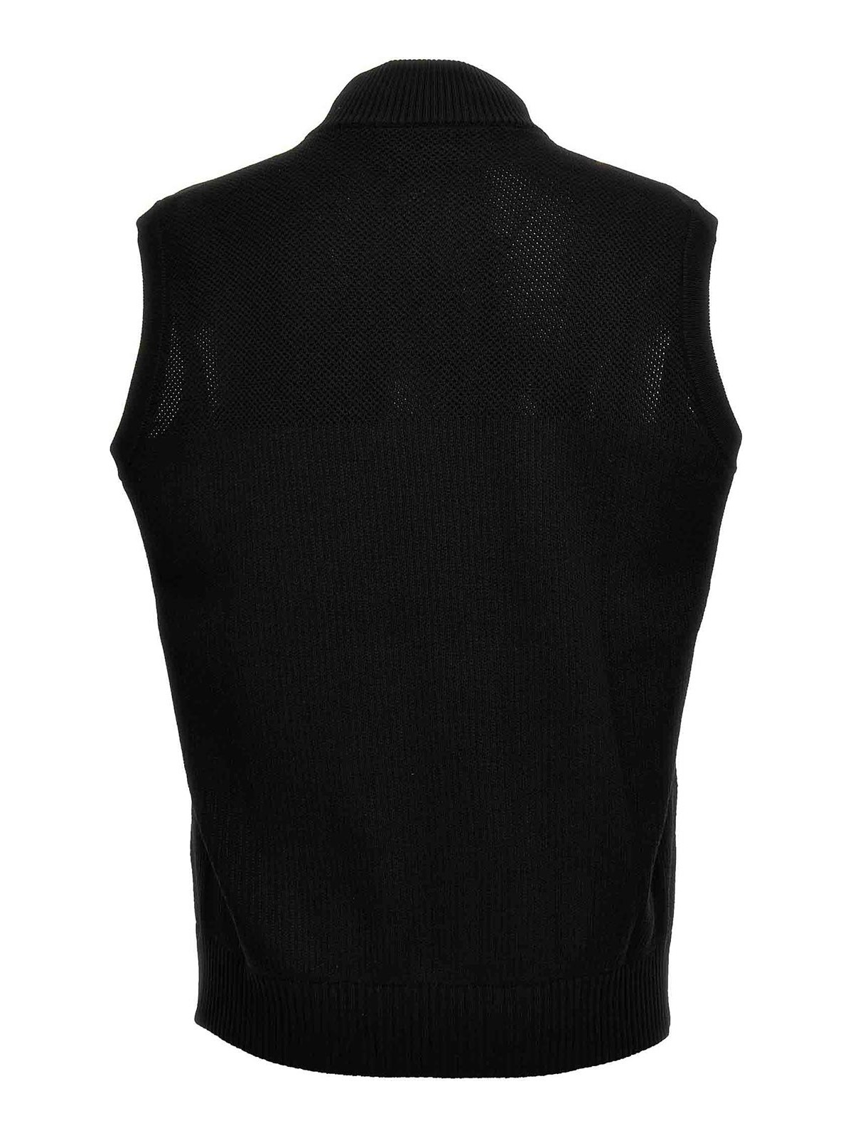 Gilet en laine mérinos d'épaisseur moyenne Hybridge Quilted Kniknit avec insert en nylon performant hydrofuge, rembourrage en diamant et duvet d'oie matelassé, col haut, écusson logo et fermeture zippée sur le devant, poches. Vêtement caractérisé par la technologie de cartographie thermique.