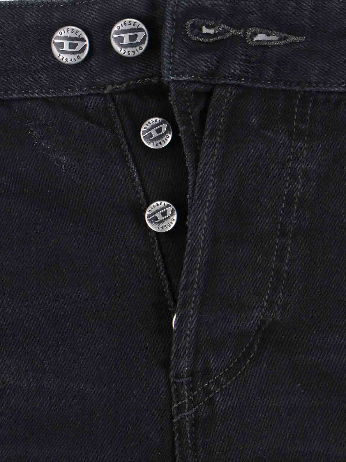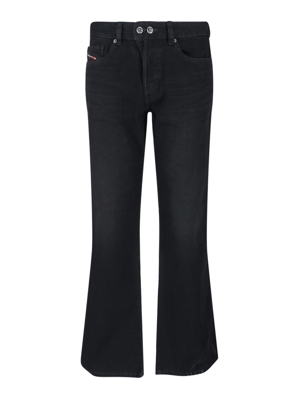 Jean bootcut D-Buck Diesel 1998, en jean noir, délavé usé, taille moyenne, passants de ceinture, fermeture boutonnée, design à cinq poches, écusson logo arrière, jambe évasée.