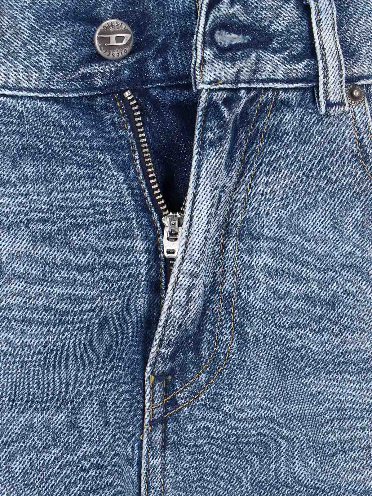 Jean large 1978 D-AKEMI Diesel en denim bleu Usé pour les passants à taille basse, design ceinture et fermeture éclair, cinq poches, étiquette, logo, logo rétro, logo rouge, coupe en direct sur le bas de jambe large