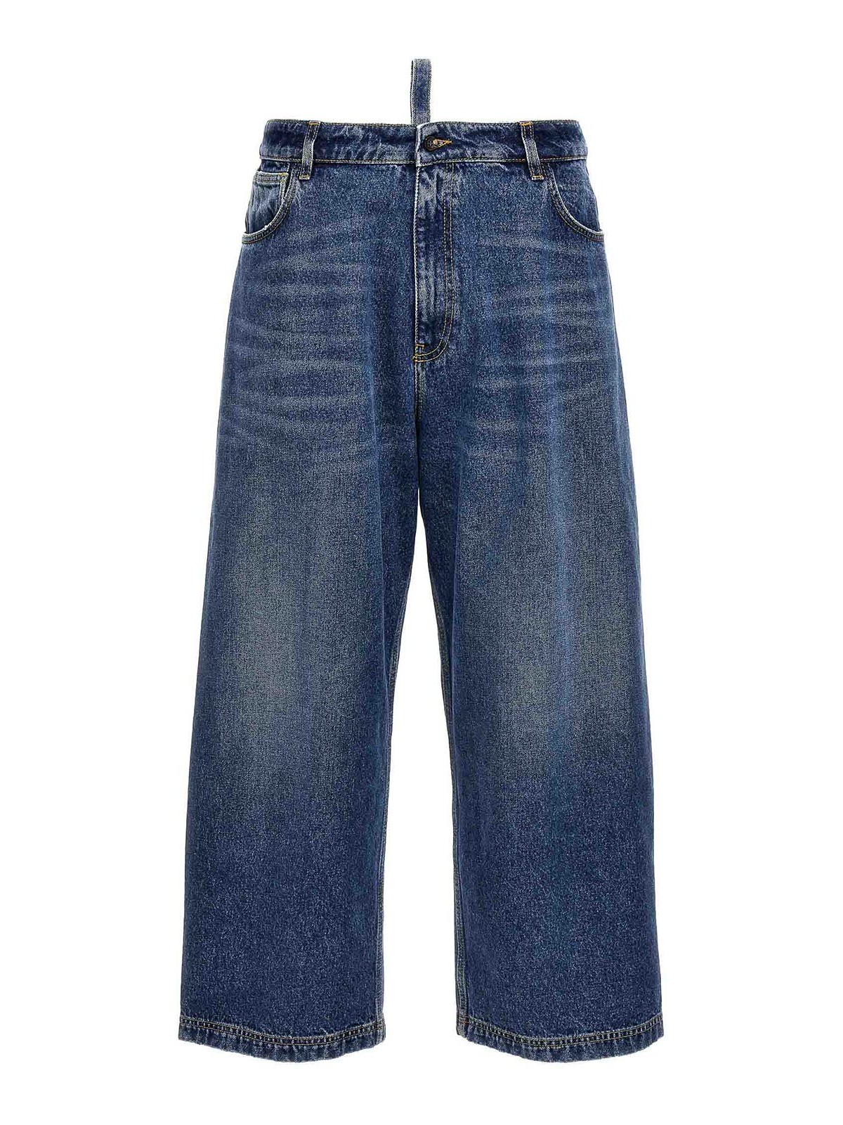 jean large en jean avec coupe ample, fermeture éclair et bouton