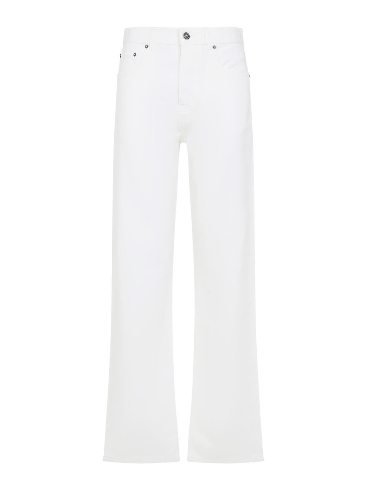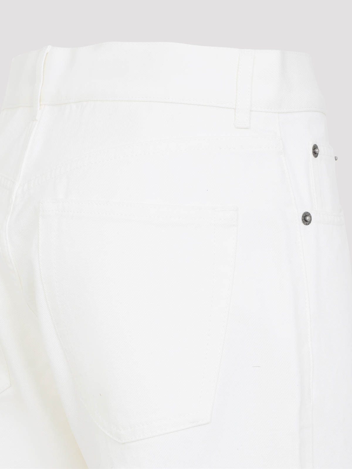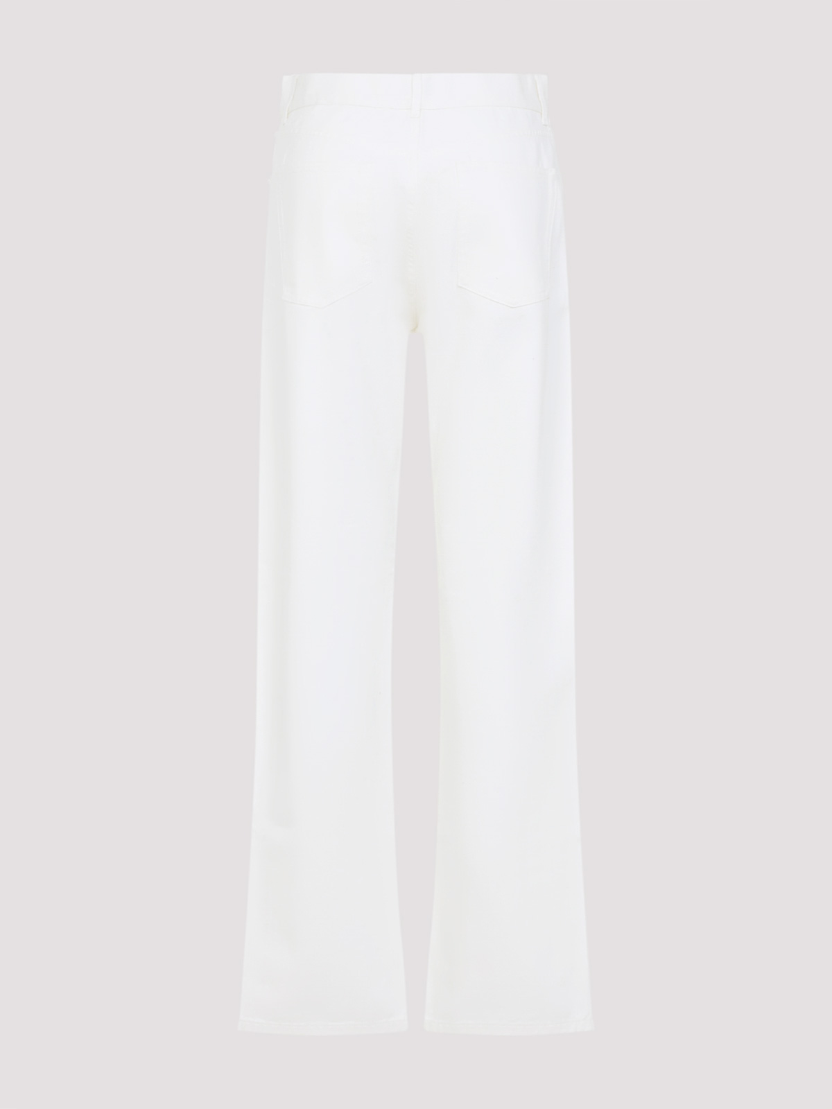 Jean Phoebe Philo à jambe fuselée en coton blanc cassé. Jean en coton blanc cassé pur, fermeture zippée dissimulante sur le devant, fermeture boutonnée sur le devant, passants de ceinture, design à cinq poches, design à cinq poches, jambe fuselée, ourlet droit.