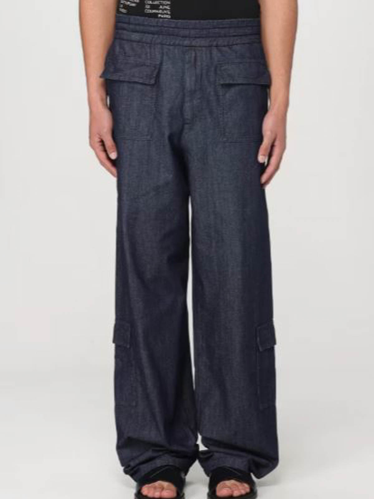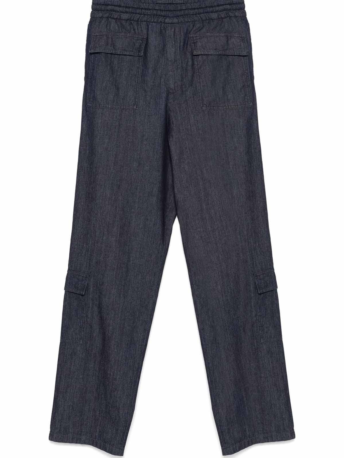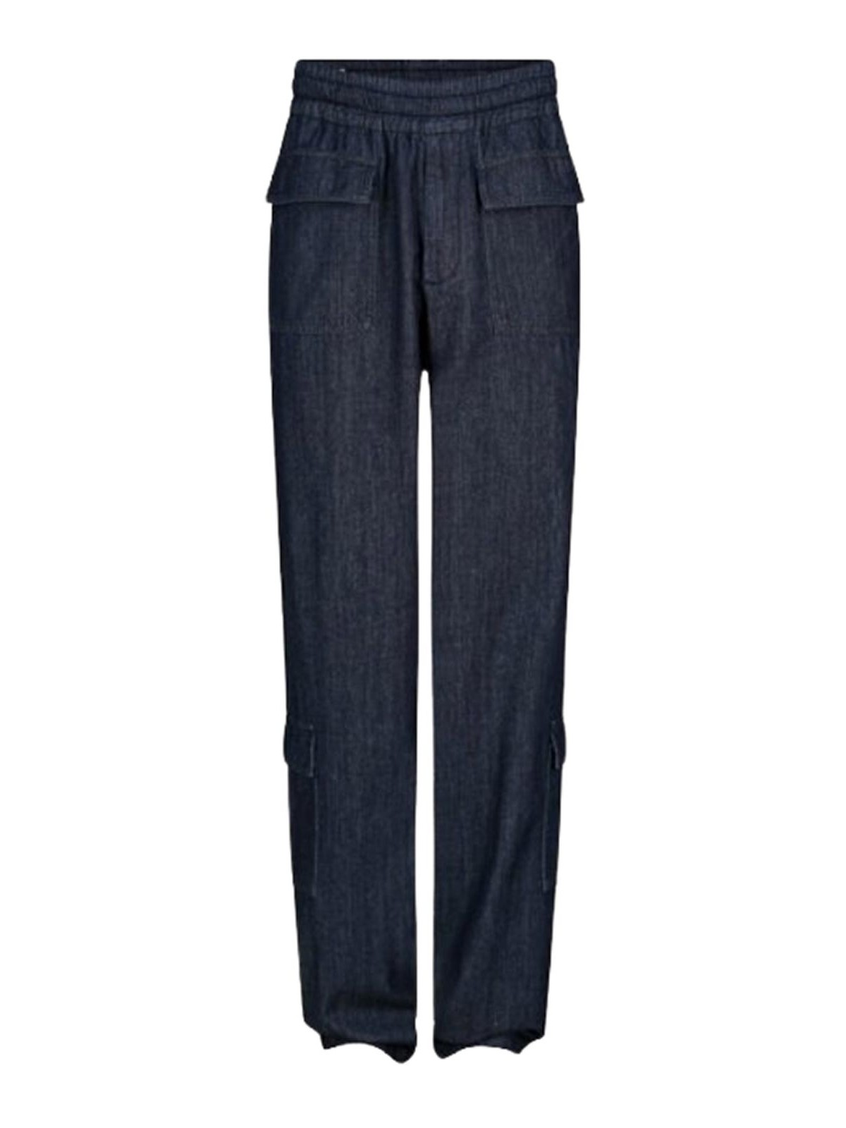 Pantalon cargo bleu avec cordon de serrage à la taille et poches