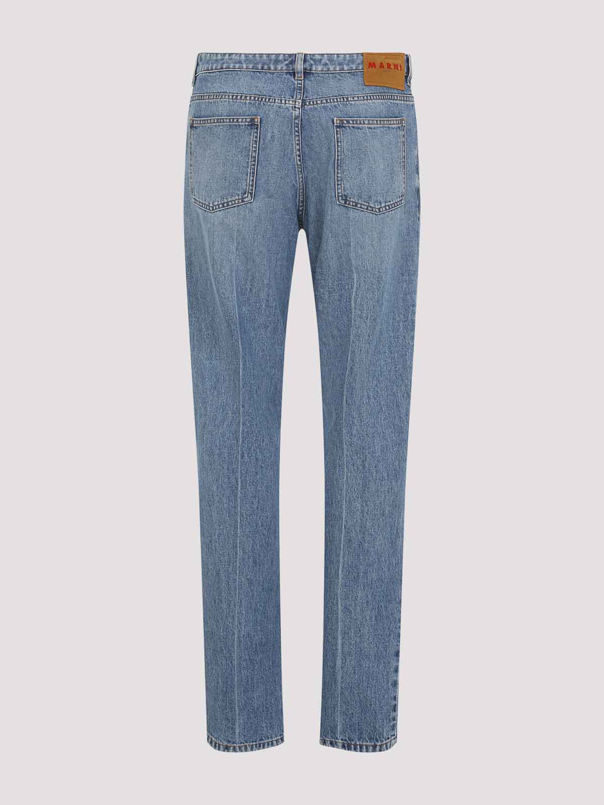 Denim taureau délavé bleu foncé Marni, jeans à poches, jeans bleu profond pur, cachant des passants de ceinture zippés et boutonnés, design à cinq poches, ourlet droit, design surlavé