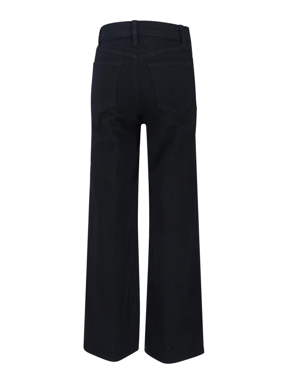 jean à cadre Le Palazzo, en coton mélangé noir, taille moyenne, design à cinq poches, passants de ceinture, fermeture boutonnée et zippée, jambe large.