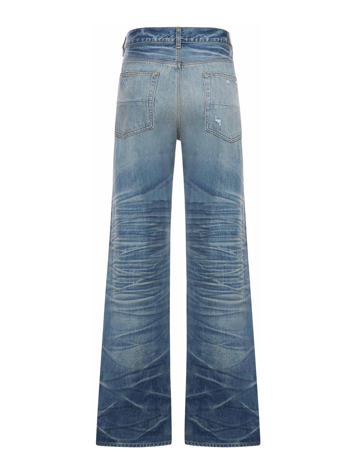 Boutonnage, passants de ceinture, poches, déchirures et froissées, bas évasé, - indigo