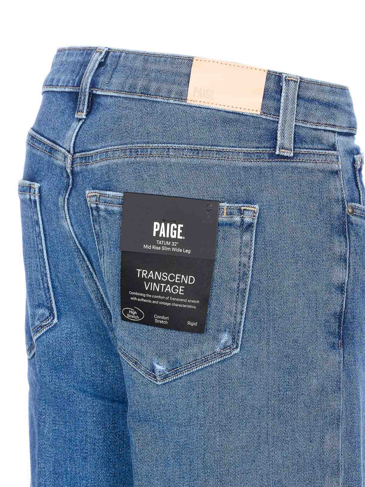 Jean tatum en jean Paige, fermeture zippée et boutonnée, 5 poches, logo patch au dos, haute élasticité