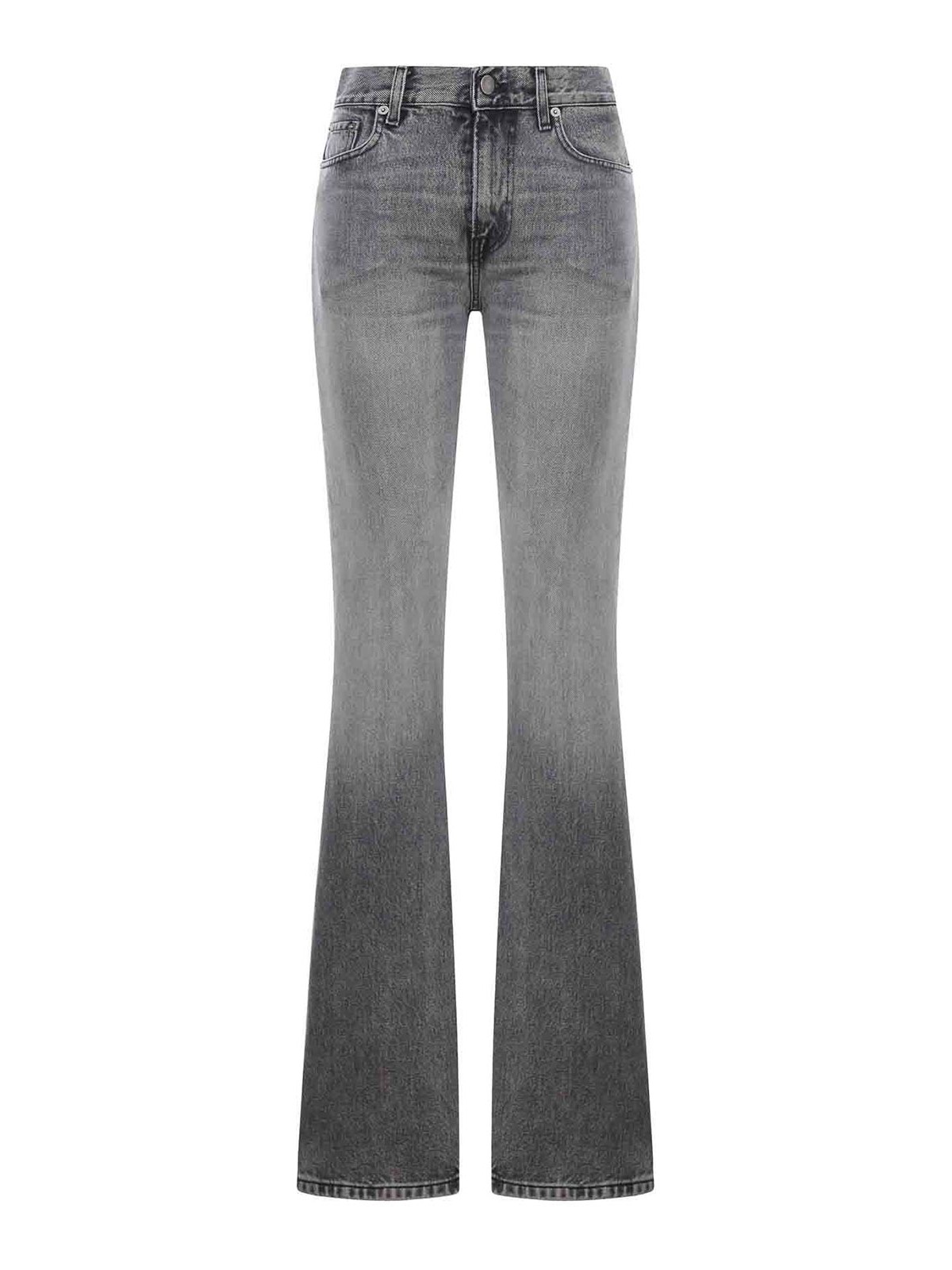 -ceinture zippée à bouton-5 poches -évasée en bas -taille M -coupe ajustée -couleur gris