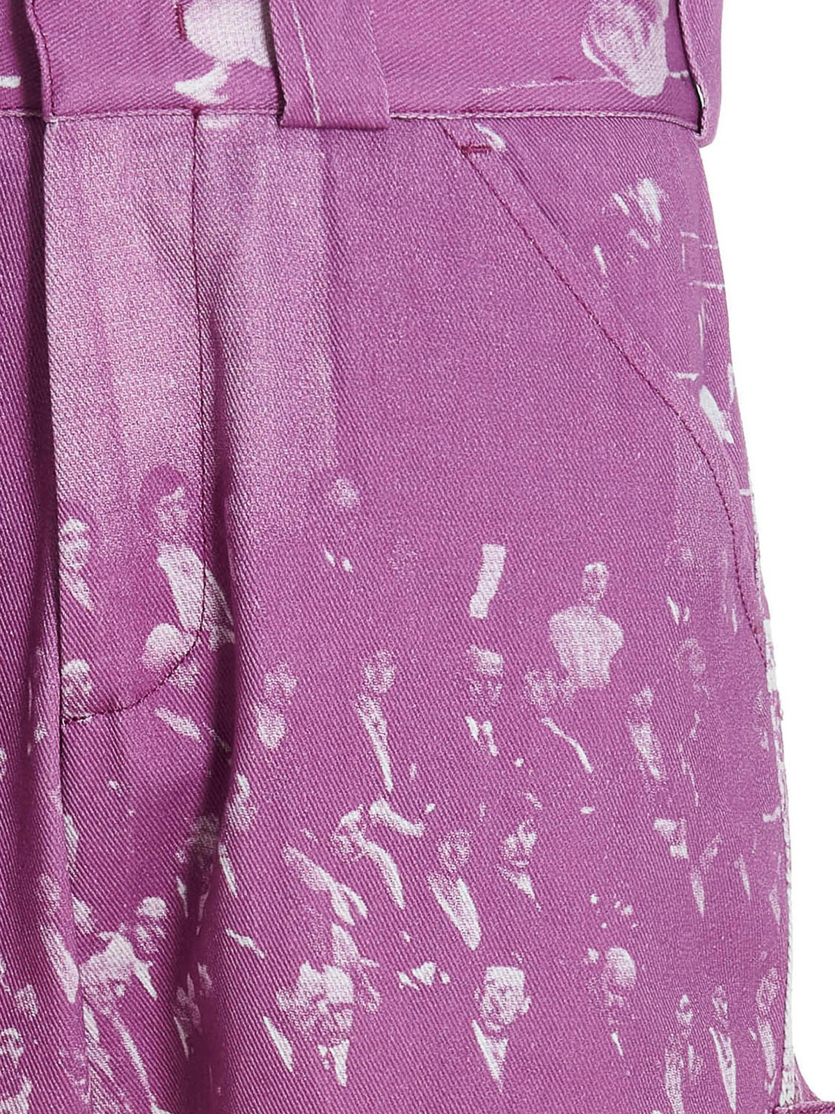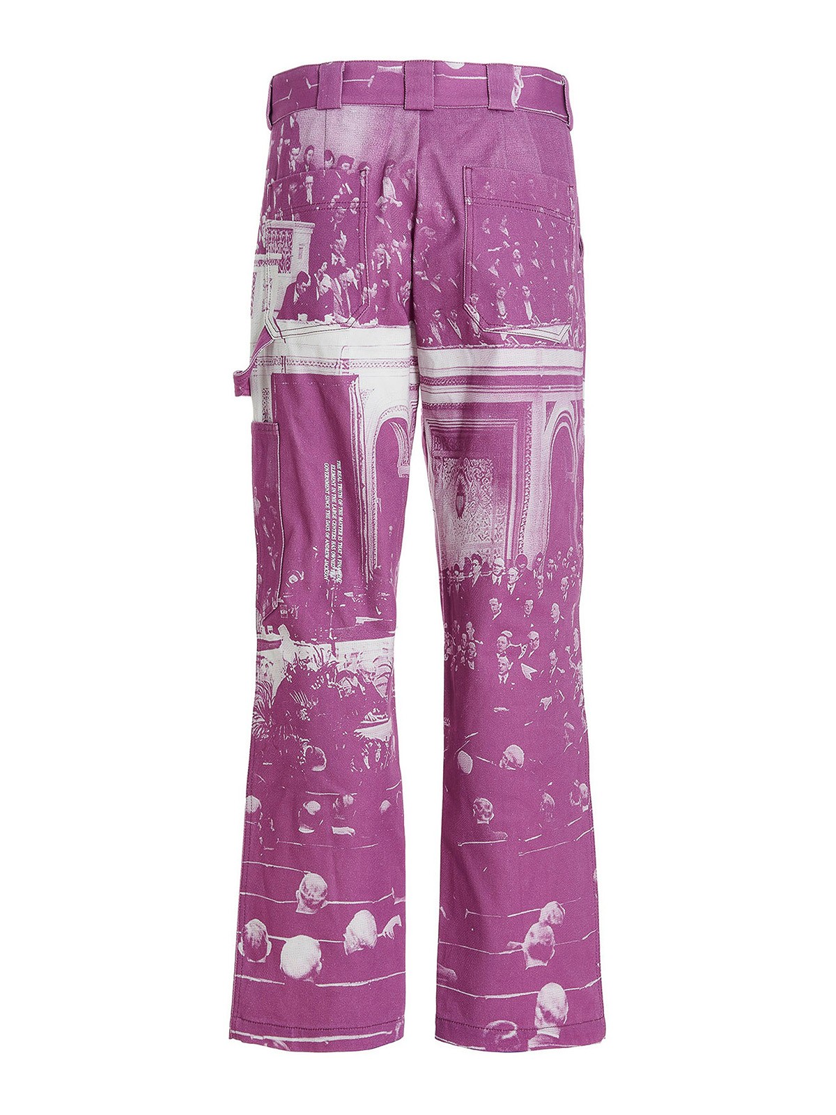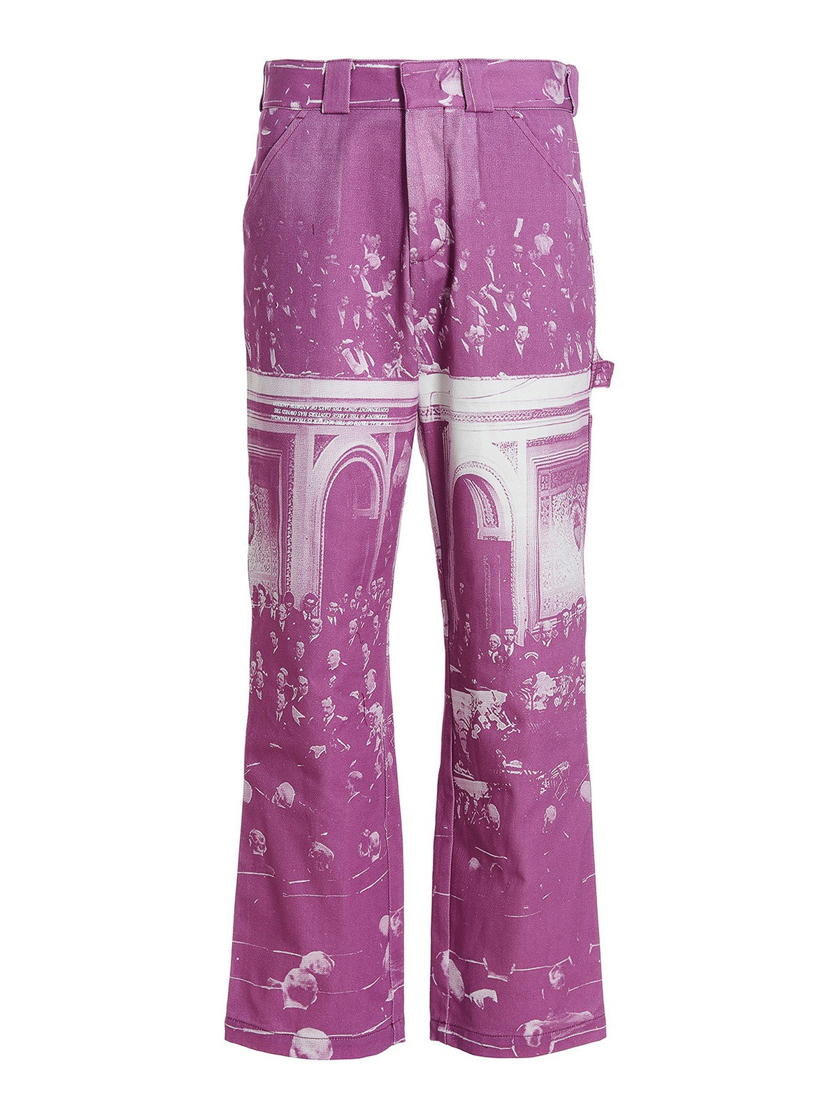 Jean en denim de coton à imprimé intégral, fermeture zippée et à crochets et poches.