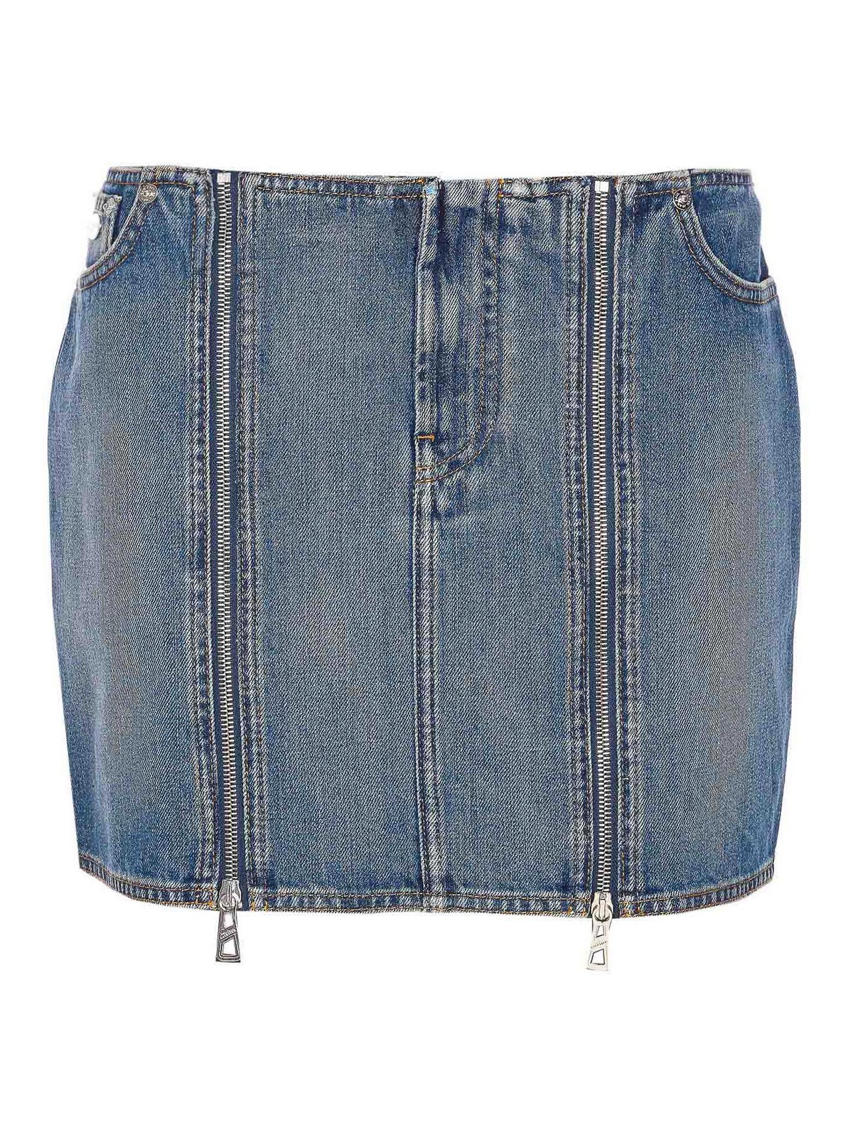 Mini-modèle de jupe zippée en jean bleu vintage avec poches et poches Jean Paul Gaultier