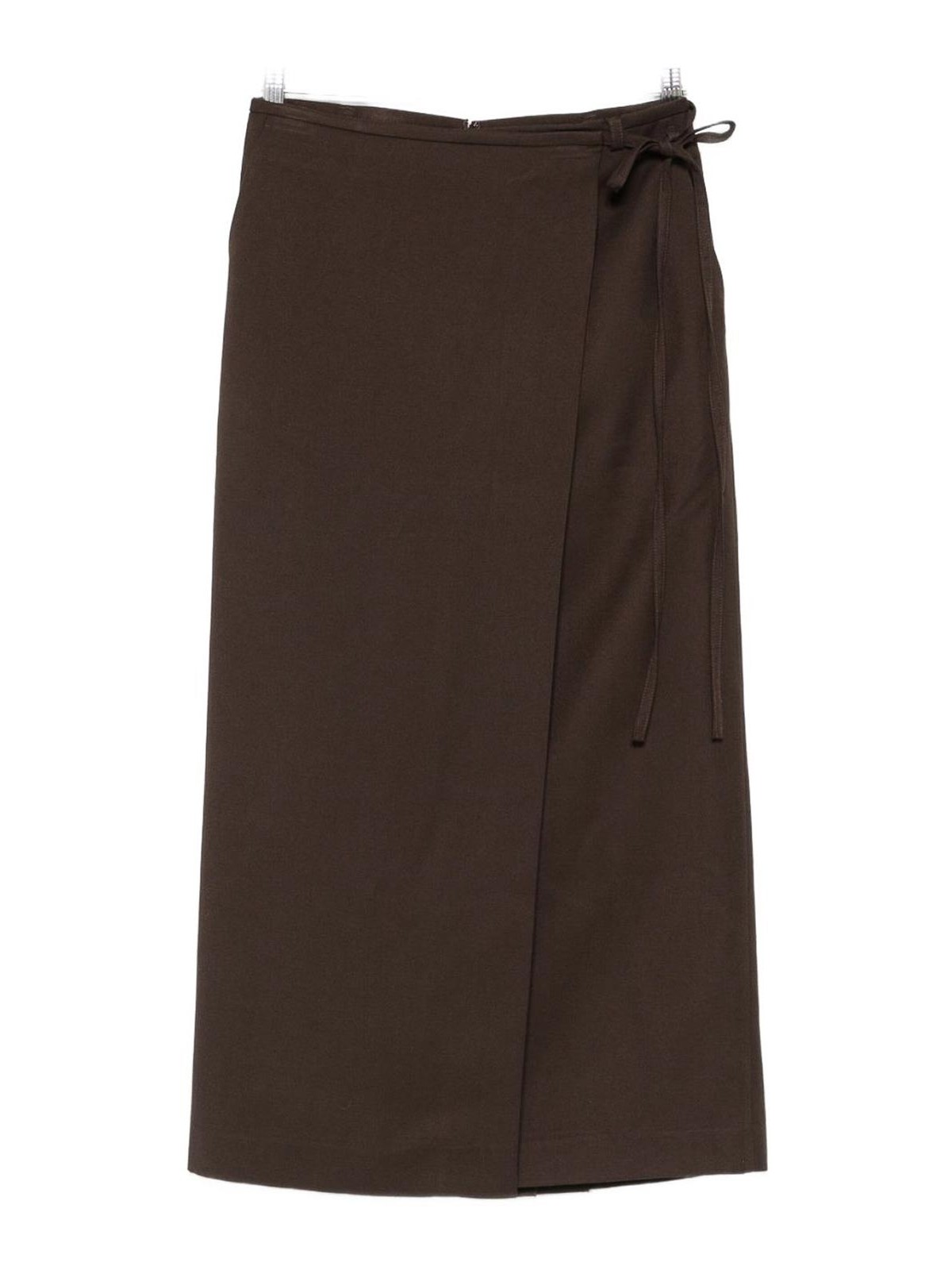 Design cache-cœur marron, fermeture à nouer, longueur midi, ourlet droit