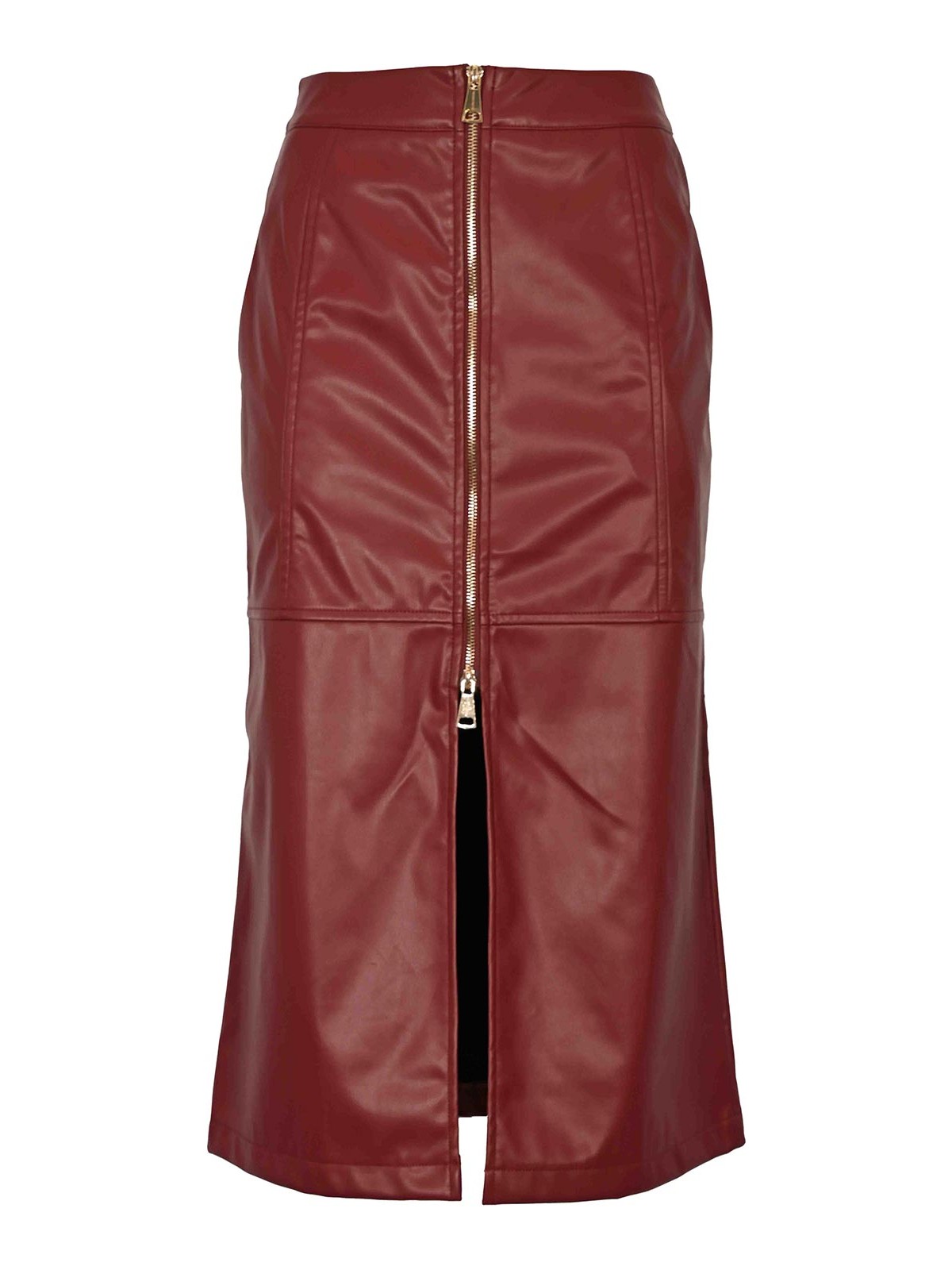 jupe midi en similicuir, no secrets tissu : tissu technique enduit aspect cuir motif : couleur unie taille haute avec ceinture lisse fermeture : taille haute avec ceinture lisse fermeture : doré à double sens poches zippées : aucune longueur : sous le genou détails midi : fente zippée avant réglable, coutures à bords nus, silhouette ajustée et lignes épurées doublée : oui coupe : coupe classique
