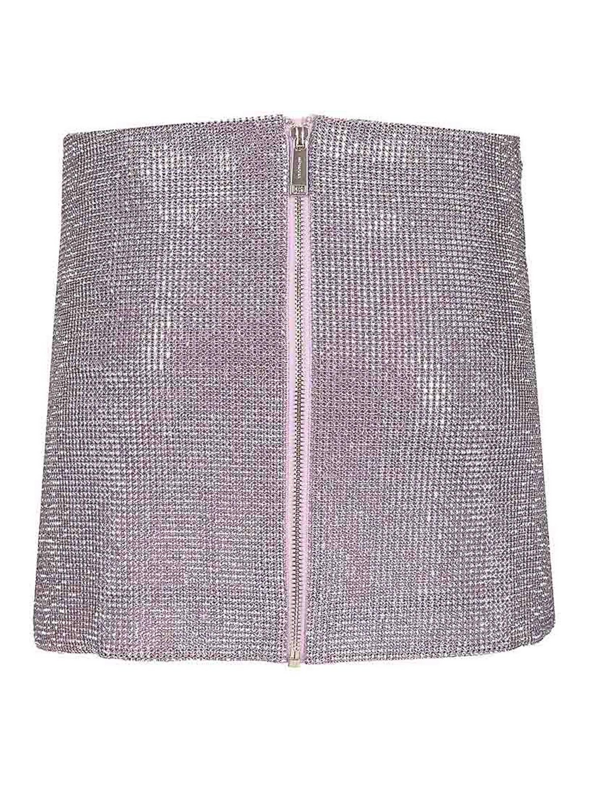 Jupe en maille métallisée autoportrait avec fermeture zippée latérale, ceinture amovible et entièrement doublée