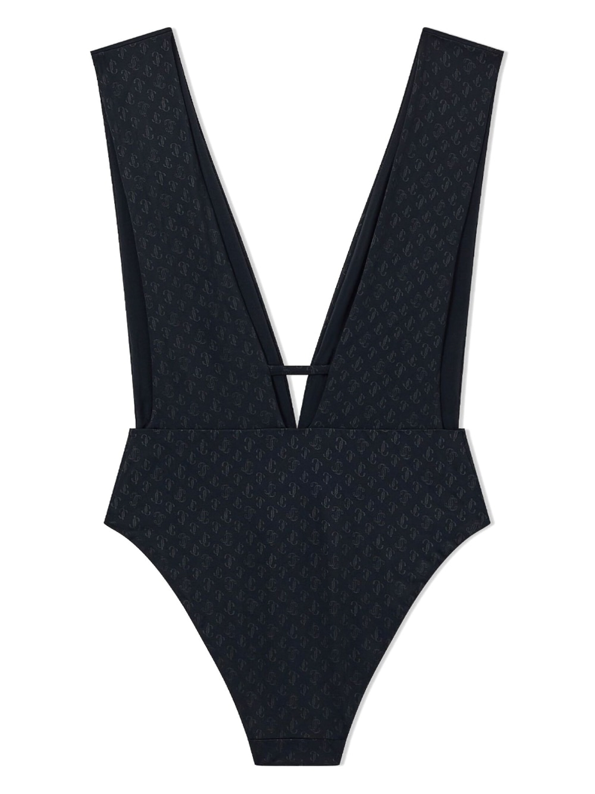 Maillot de bain monogrammé à col en V de Jimmy Choo orné d'un motif monogrammé Econyl noir, d'un col en V plongeant, sans manches et d'une taille ajustée. N'oubliez pas d'essayer un maillot de bain par-dessus vos propres vêtements